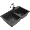 Mexen Tomas évier granit 2 bacs avec robinet de cuisine Carla, gris - 6516-71-670700-70-B