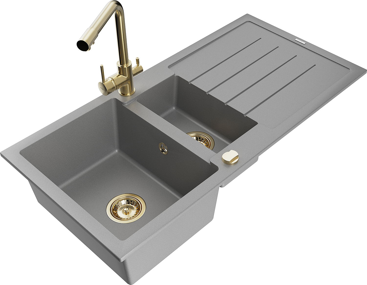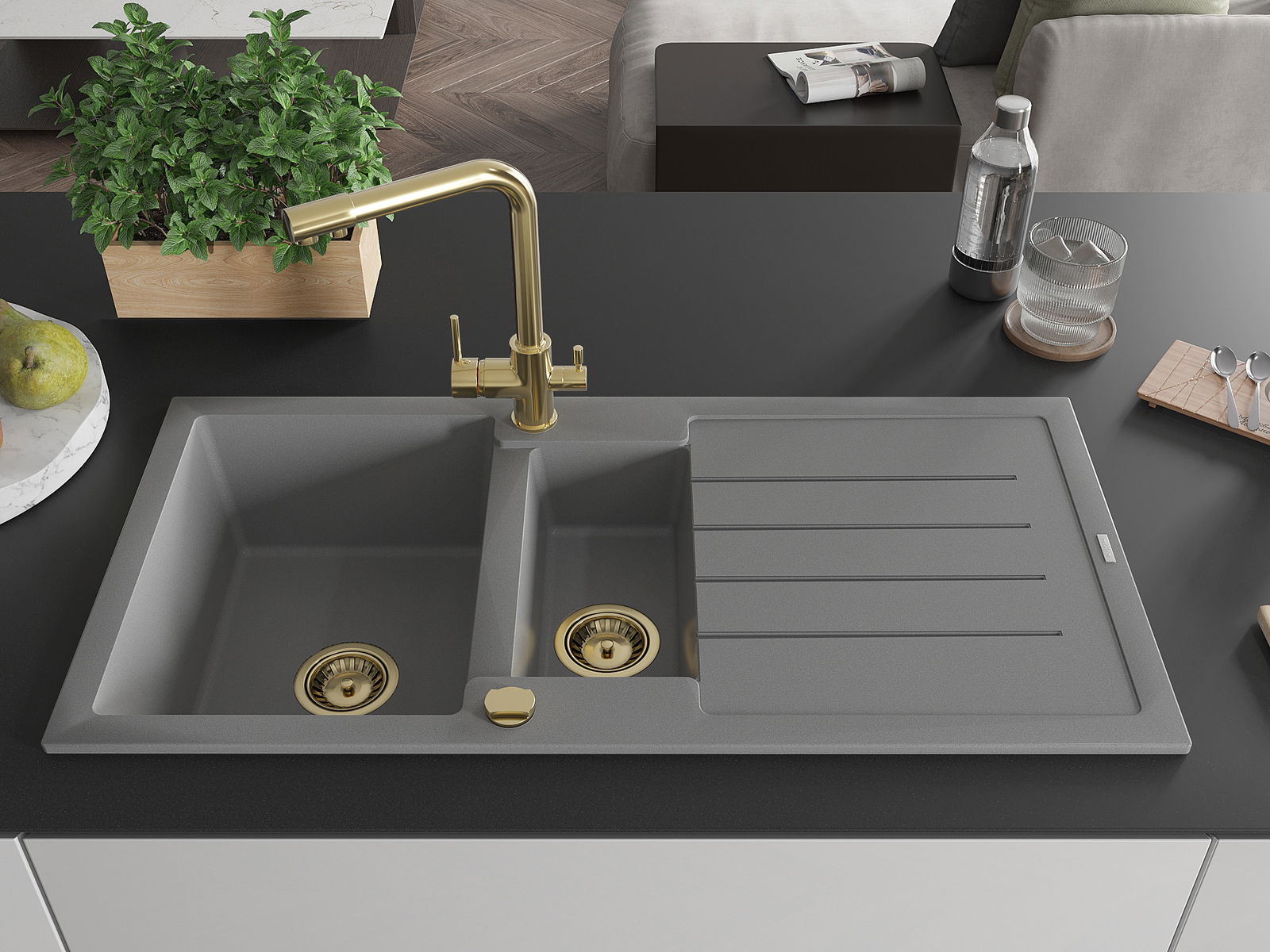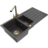 Mexen Andres évier en granit 1,5 bac avec égouttoir et mitigeur cuisine Duero, gris - 6515-71-671600-50