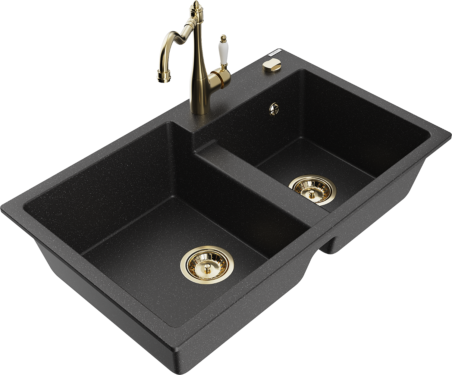 Mexen Tomas évier de cuisine en granit à 2 bacs avec robinet Carla, noir/métallisé argenté - 6516-73-670700-50