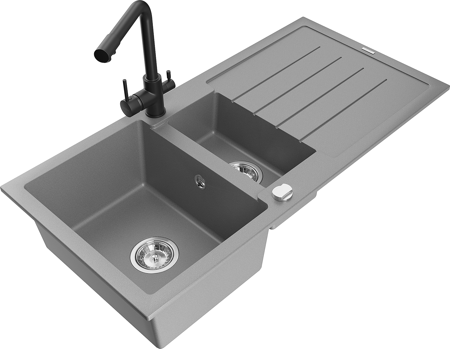 Mexen Andres évier en granit 1,5 bac avec égouttoir et robinet de cuisine Duero, gris - 6515-71-671600-70