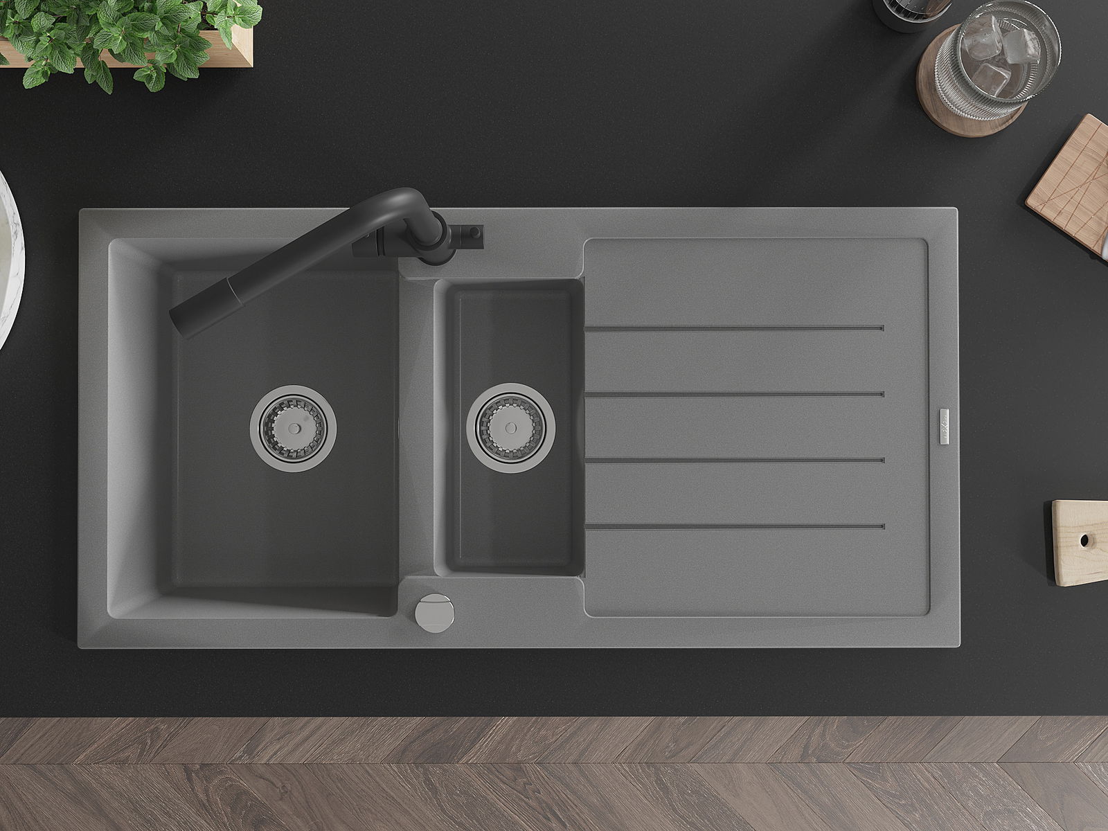 L'évier est fabriqué en granit de haute qualité. Il constitue un complément élégant et surtout pratique pour toute cuisine, quel que soit son style. La qualité et la durabilité du granit garantissent de nombreuses années d'utilisation.