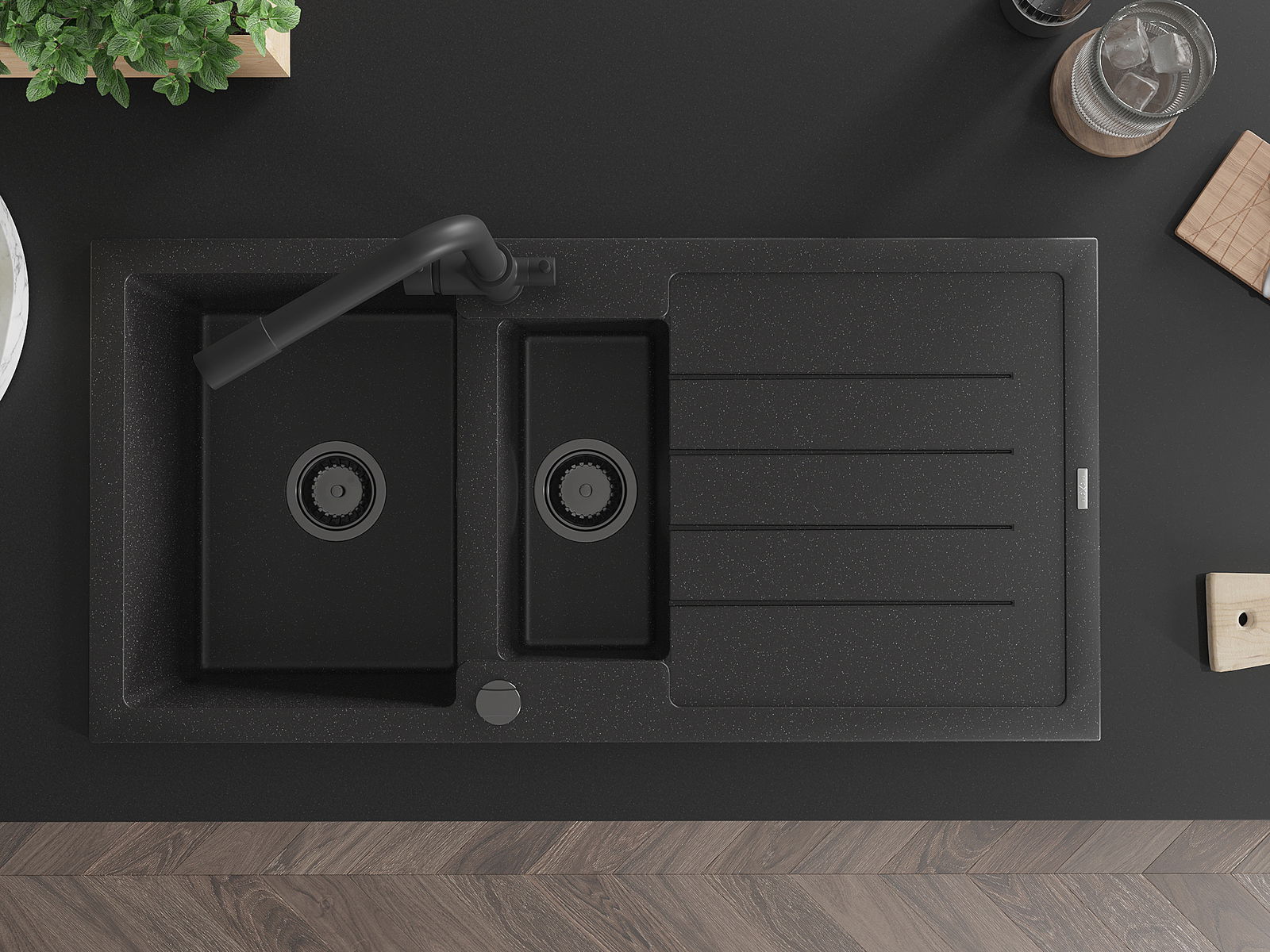 La surface de l'évier est très bien trempée et se distingue par une résistance exceptionnelle aux dommages mécaniques et aux rayures. Ce matériau durable vous permettra de profiter de son bel aspect pendant de nombreuses années.