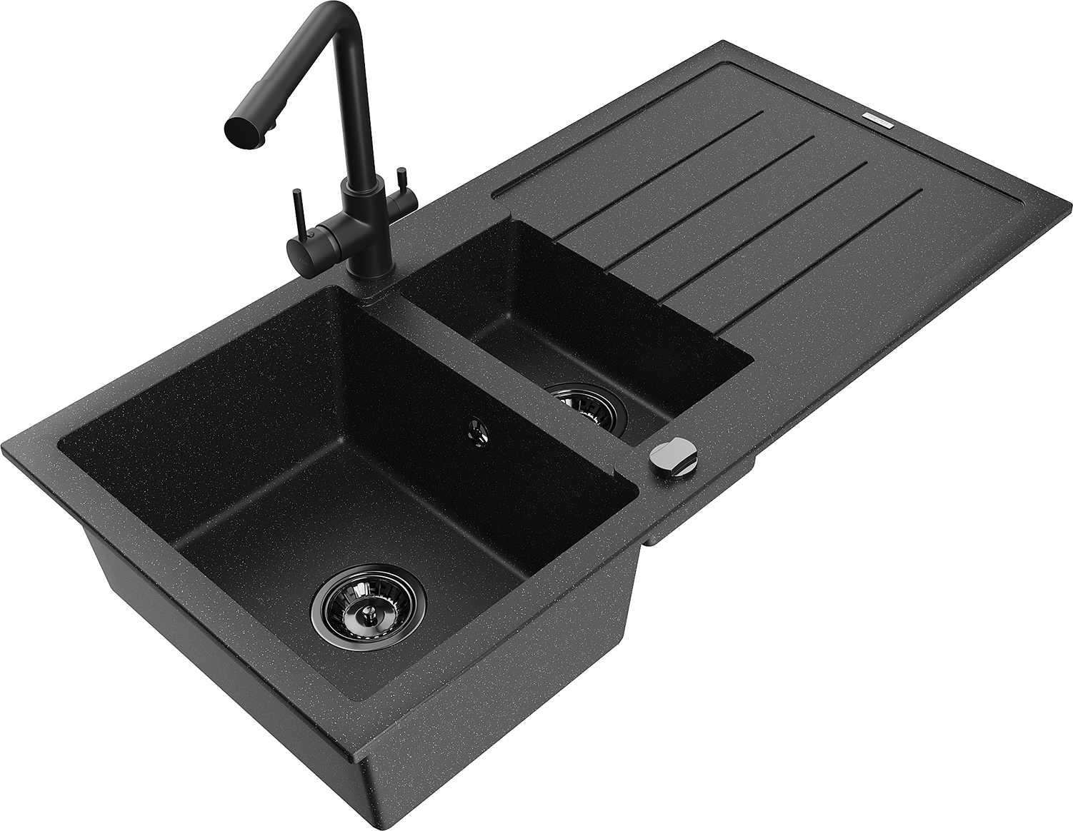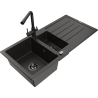 Mexen Andres évier en granit à 1,5 bac avec égouttoir et mitigeur cuisine Duero, noir/argenté - 6515-73-671600-70-B