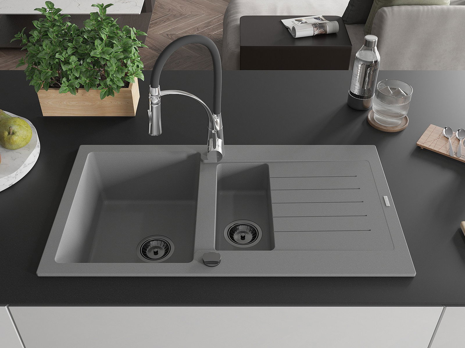 L'évier est fabriqué en granit de haute qualité. Il constitue un complément élégant et surtout pratique pour toute cuisine, quel que soit son style. La qualité et la durabilité du granit garantissent de nombreuses années d'utilisation.
