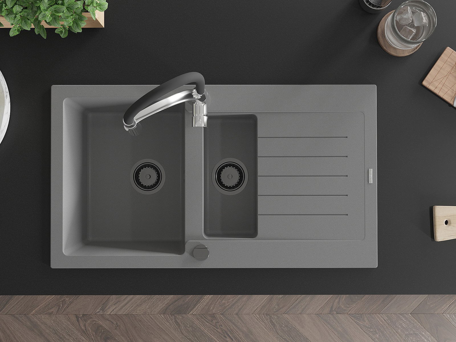 La surface de l'évier est très bien trempée et se distingue par une résistance exceptionnelle aux dommages mécaniques et aux rayures. Ce matériau durable vous permettra de profiter de son bel aspect pendant de nombreuses années.