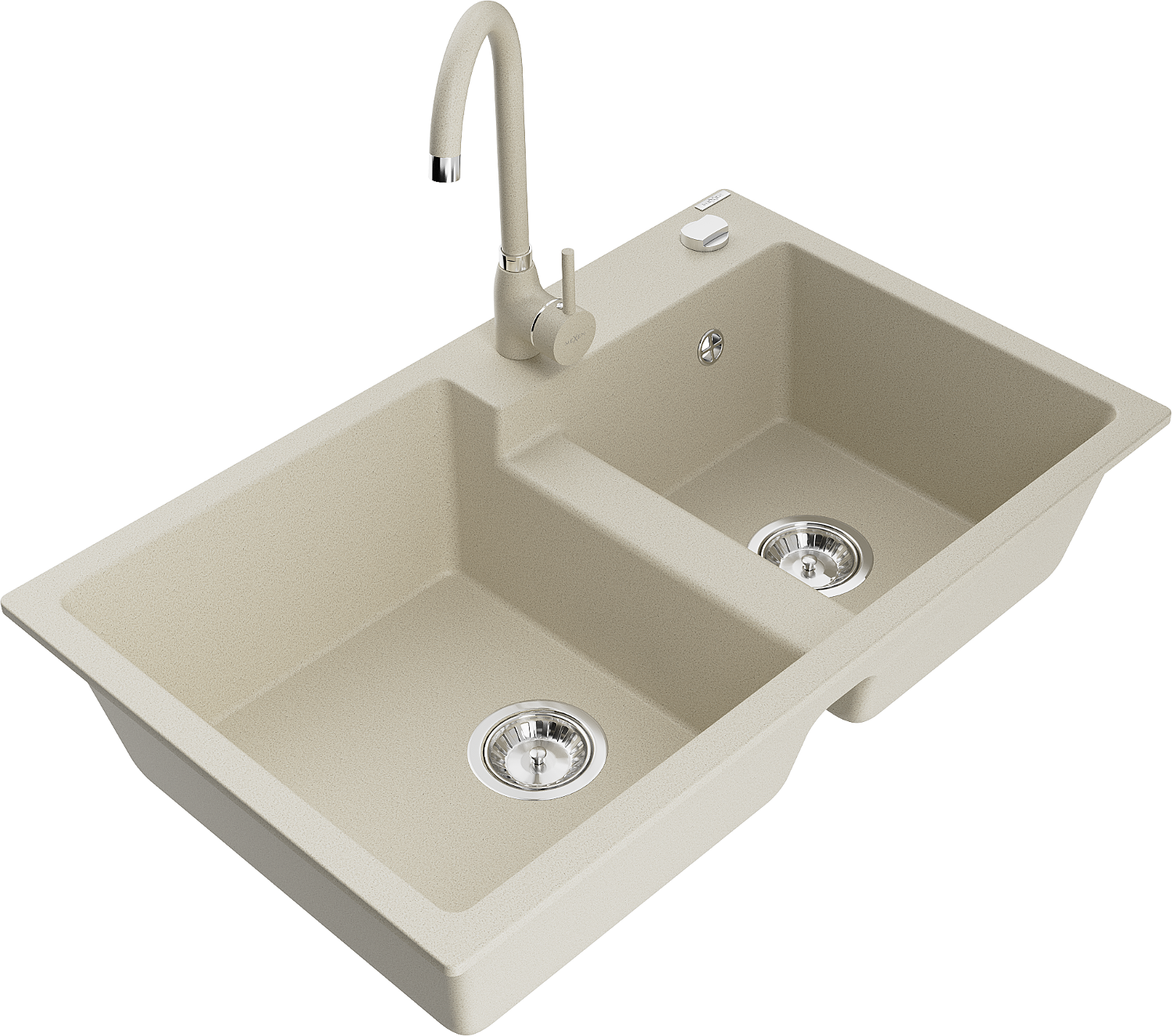 Mexen Tomas évier de cuisine granitique à 2 bacs avec robinet de cuisine Telma, beige - 6516-69-670200-69