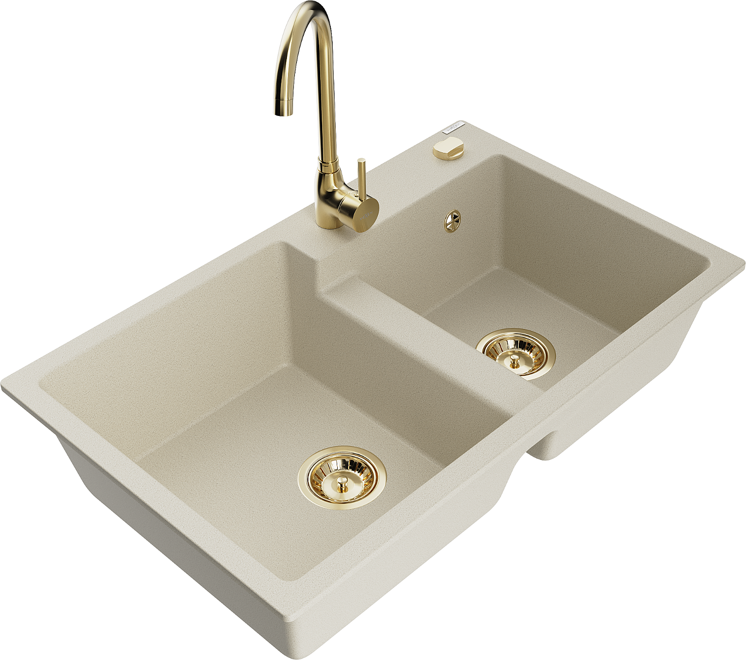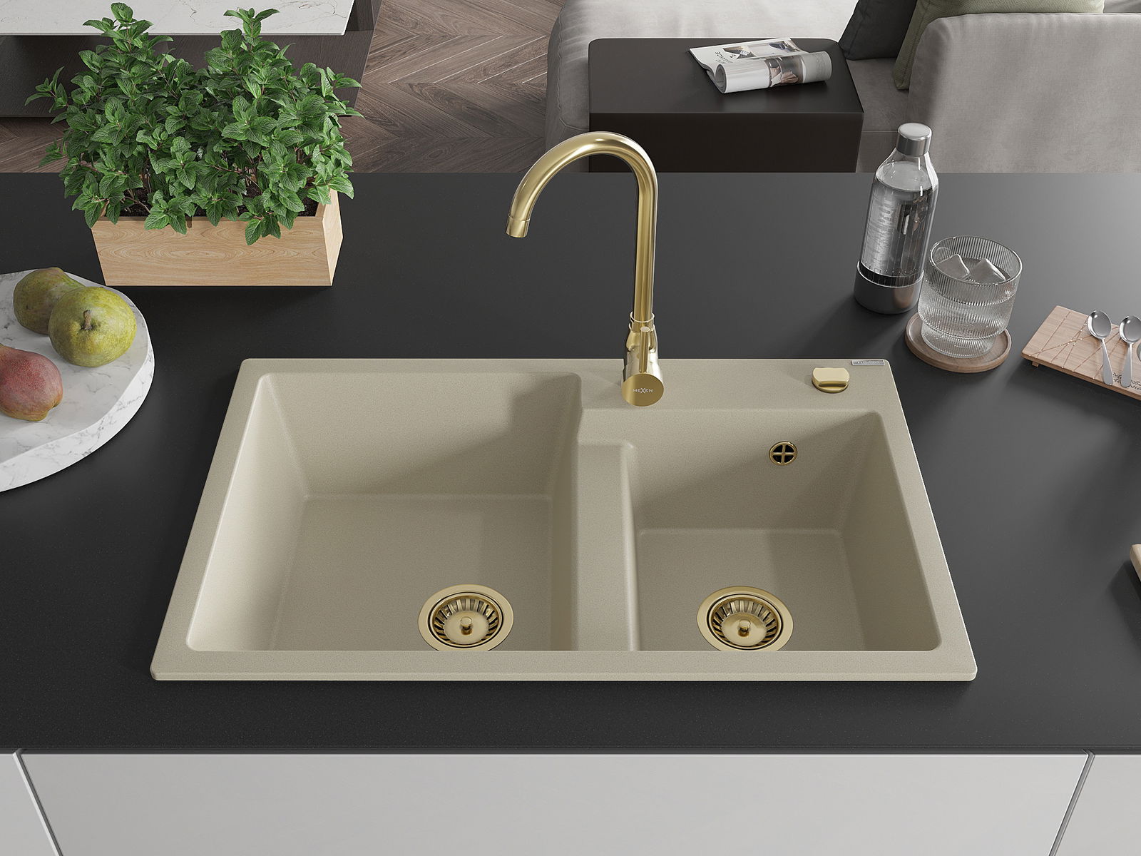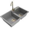 Mexen Tomas évier en granit à 2 bacs avec robinet de cuisine Telma, beige - 6516-69-670200-50