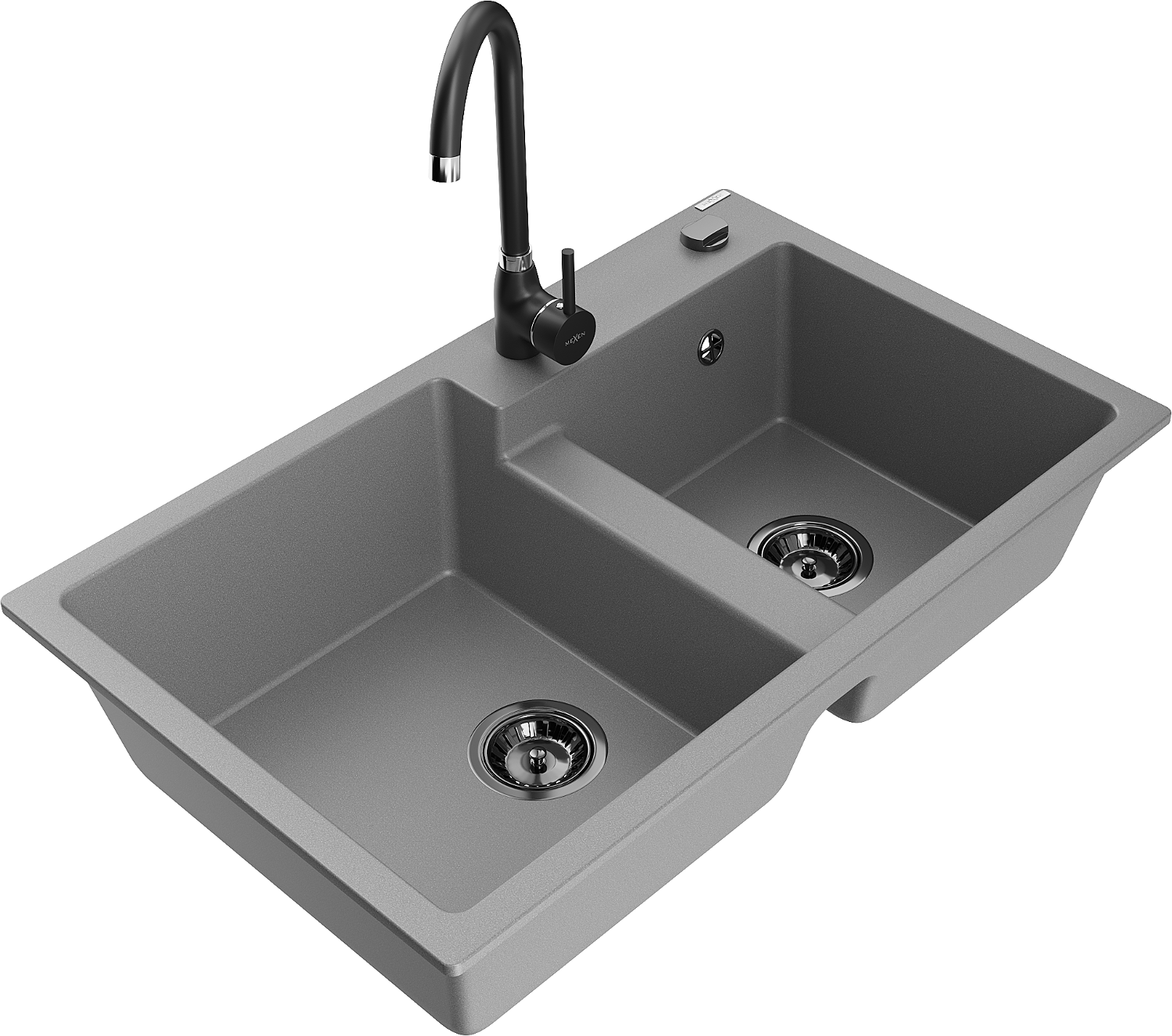 Mexen Tomas évier granit 2 bacs avec robinet de cuisine Telma, gris - 6516-71-670200-70-B