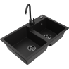Mexen Tomas évier de cuisine en granit à 2 bacs avec robinet de cuisine Telma, noir/métallisé argent - 6516-73-670200-70-B