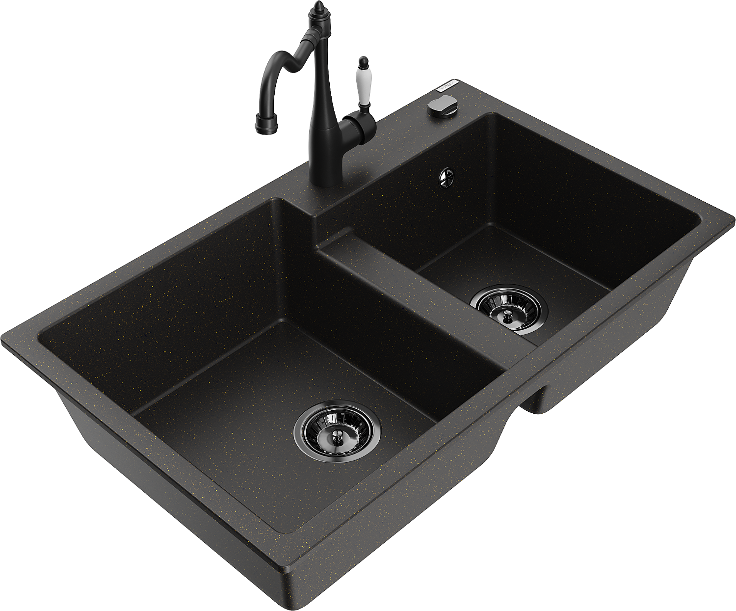 Mexen Tomas évier en granit à 2 bacs avec robinet de cuisine Carla, noir/or métallique - 6516-75-670700-70-B