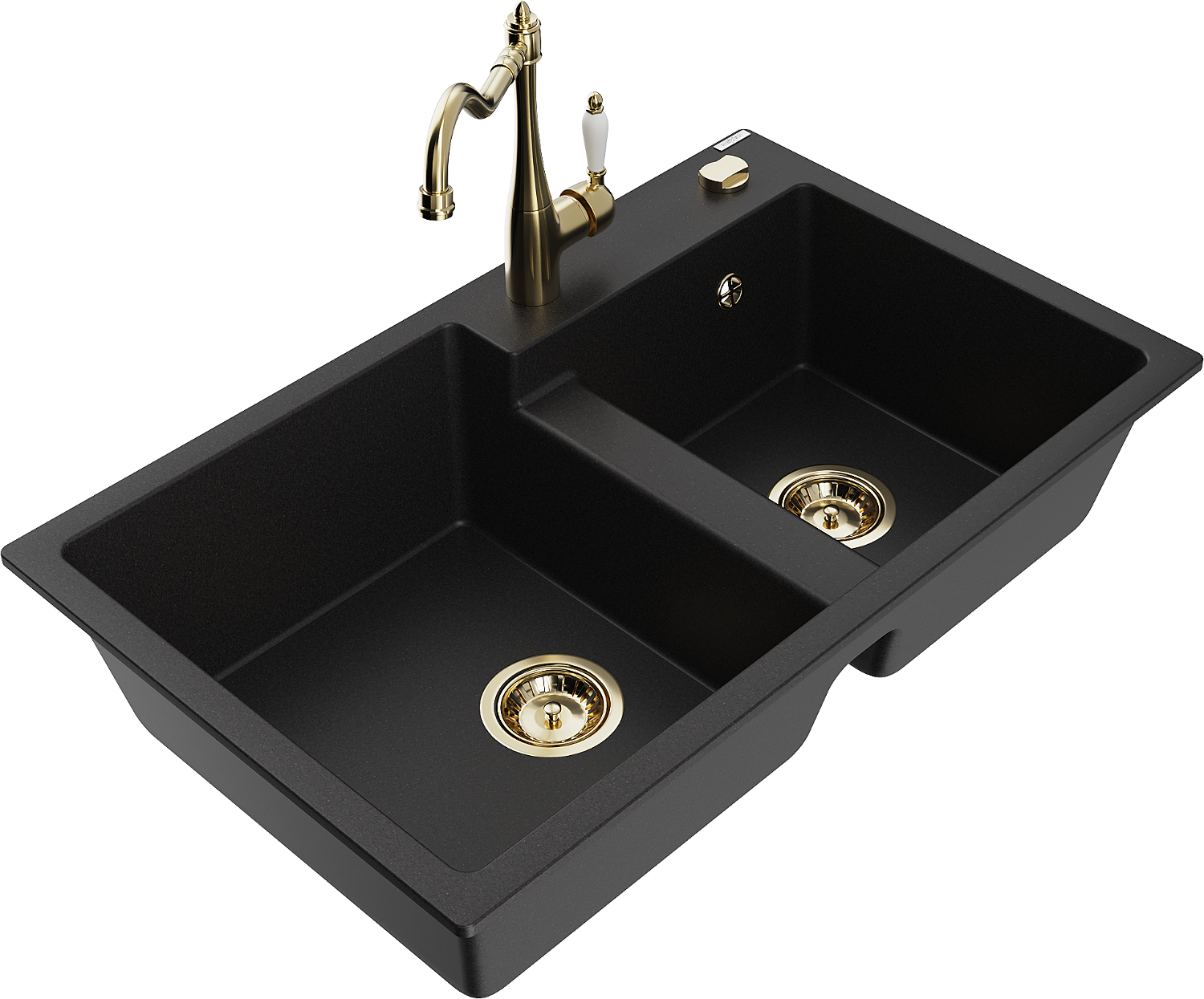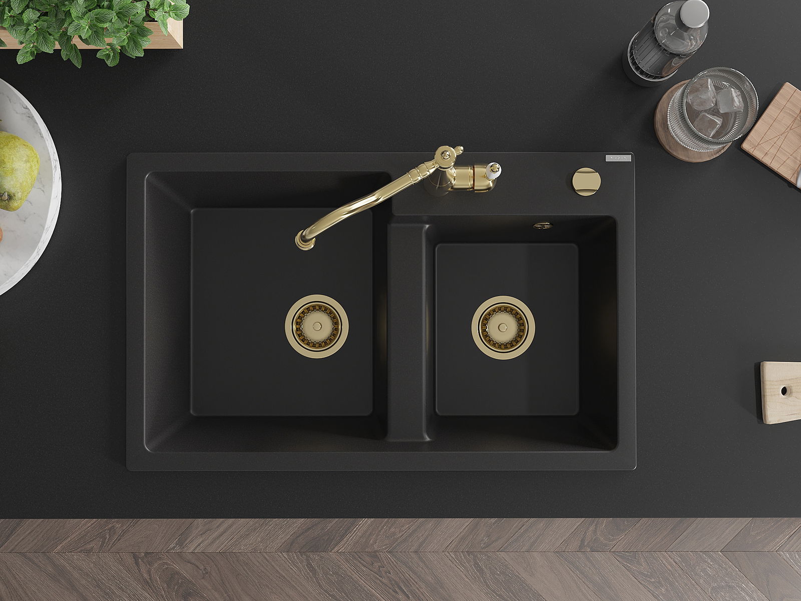 Mexen Tomas évier en granit à 2 bacs avec robinet de cuisine Carla, noir - 6516-77-670700-50