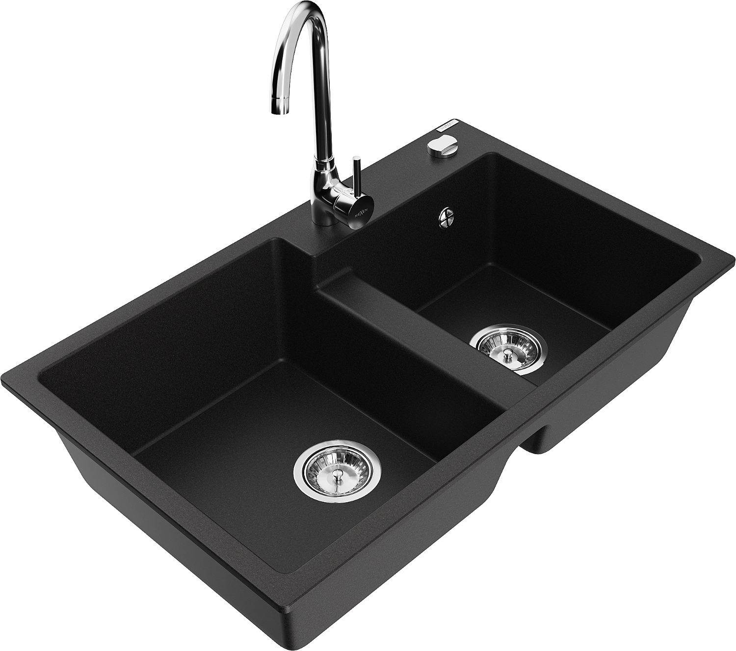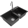 Mexen Tomas évier de cuisine en granit 2 bacs avec robinet de cuisine Telma, noir - 6516-77-670200-00