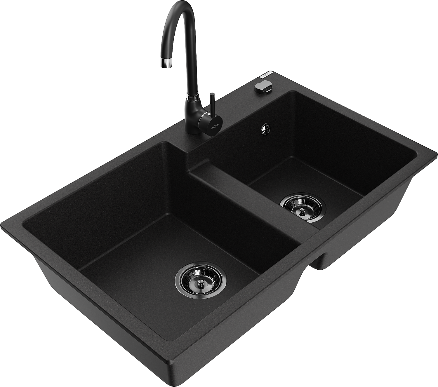 Mexen Tomas évier de cuisine en granit 2 bacs avec robinet Telma, noir - 6516-77-670200-70-B