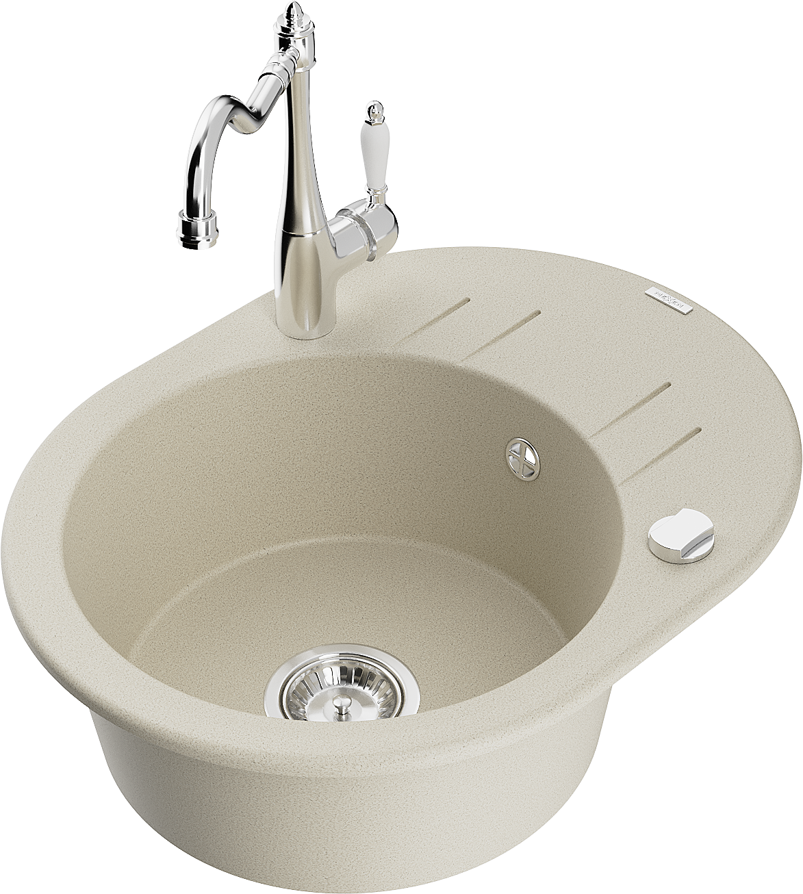 Mexen Kevin évier de cuisine en granit 1 bac avec égouttoir et robinet de cuisine Carla, beige - 6517-69-670700-00