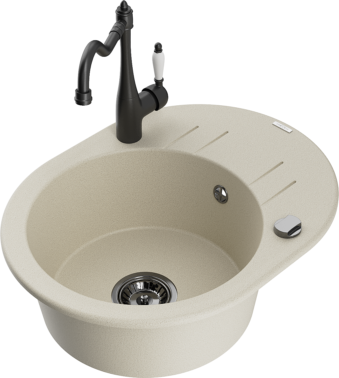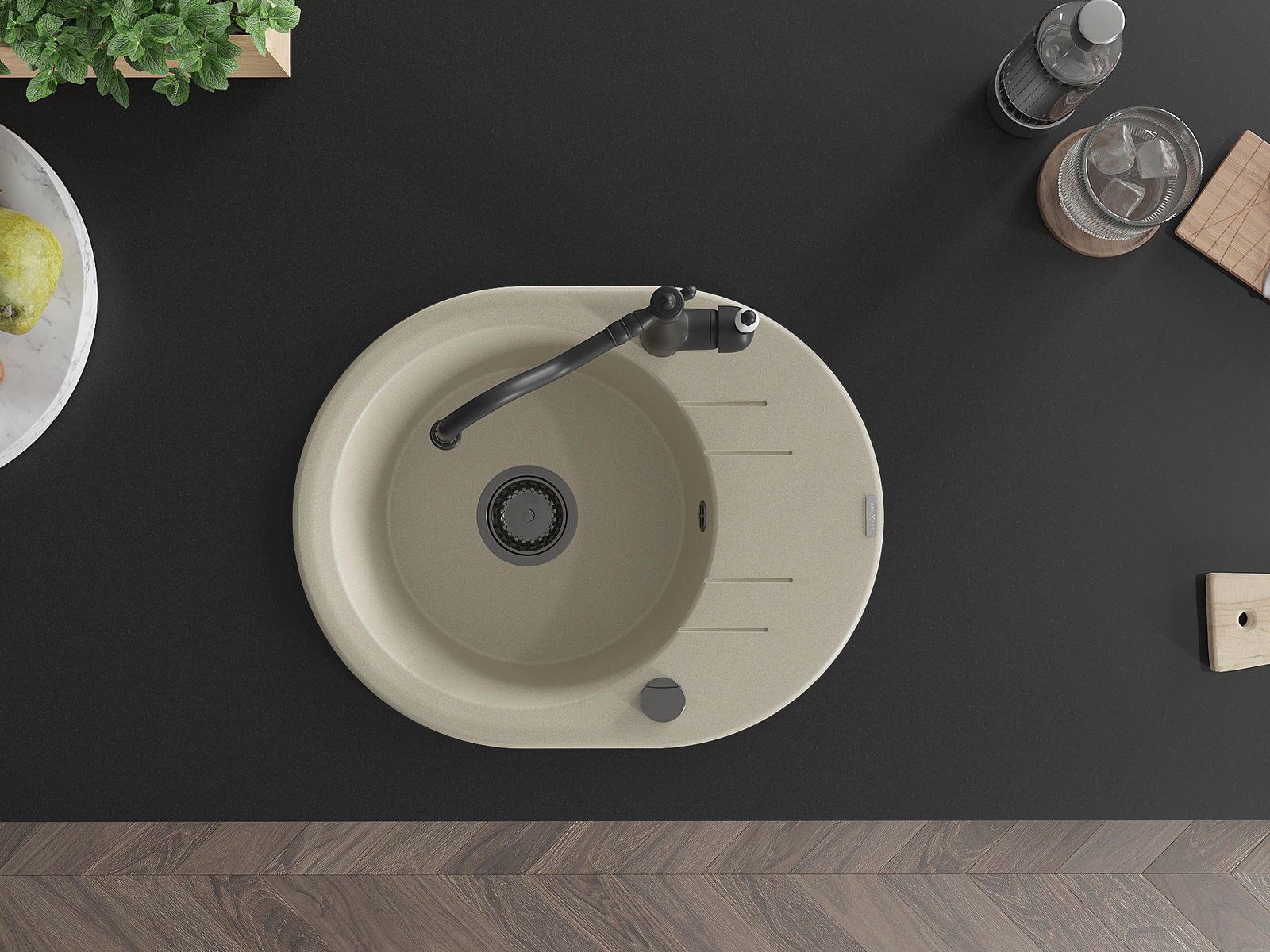 Mexen Kevin évier en granit à 1 bac avec égouttoir et robinet de cuisine Carla, beige - 6517-69-670700-70