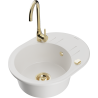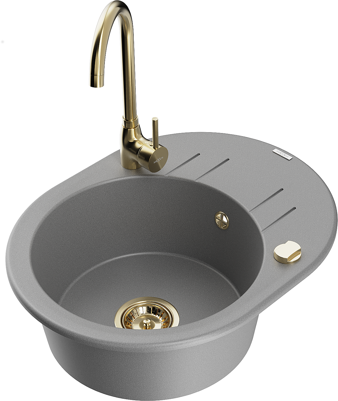 Mexen Kevin évier en granit 1 bac avec égouttoir et robinet de cuisine Telma, gris - 6517-71-670200-50