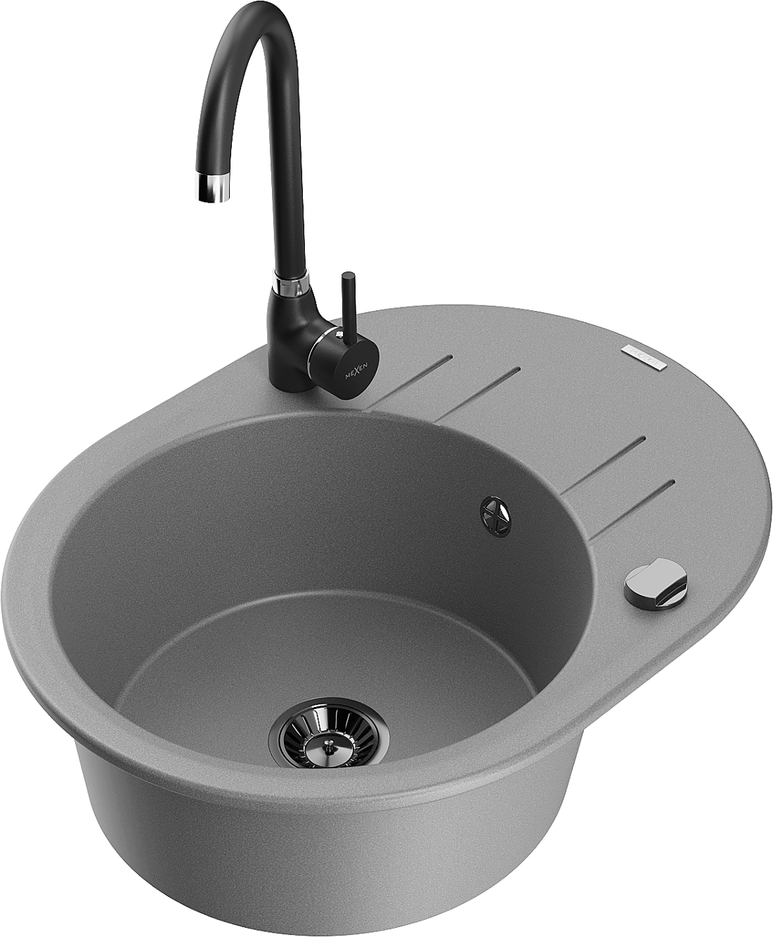 Mexen Kevin évier en granit 1 bac avec égouttoir et robinet de cuisine Telma, gris - 6517-71-670200-70-B