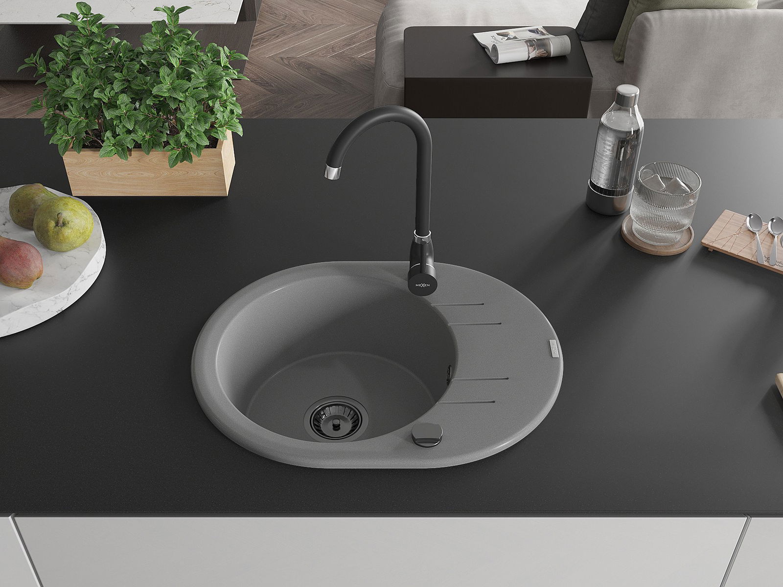 L'évier est fabriqué en granit de haute qualité. Il constitue un complément élégant et surtout pratique pour toute cuisine, quel que soit son style. La qualité et la durabilité du granit garantissent de nombreuses années d'utilisation.