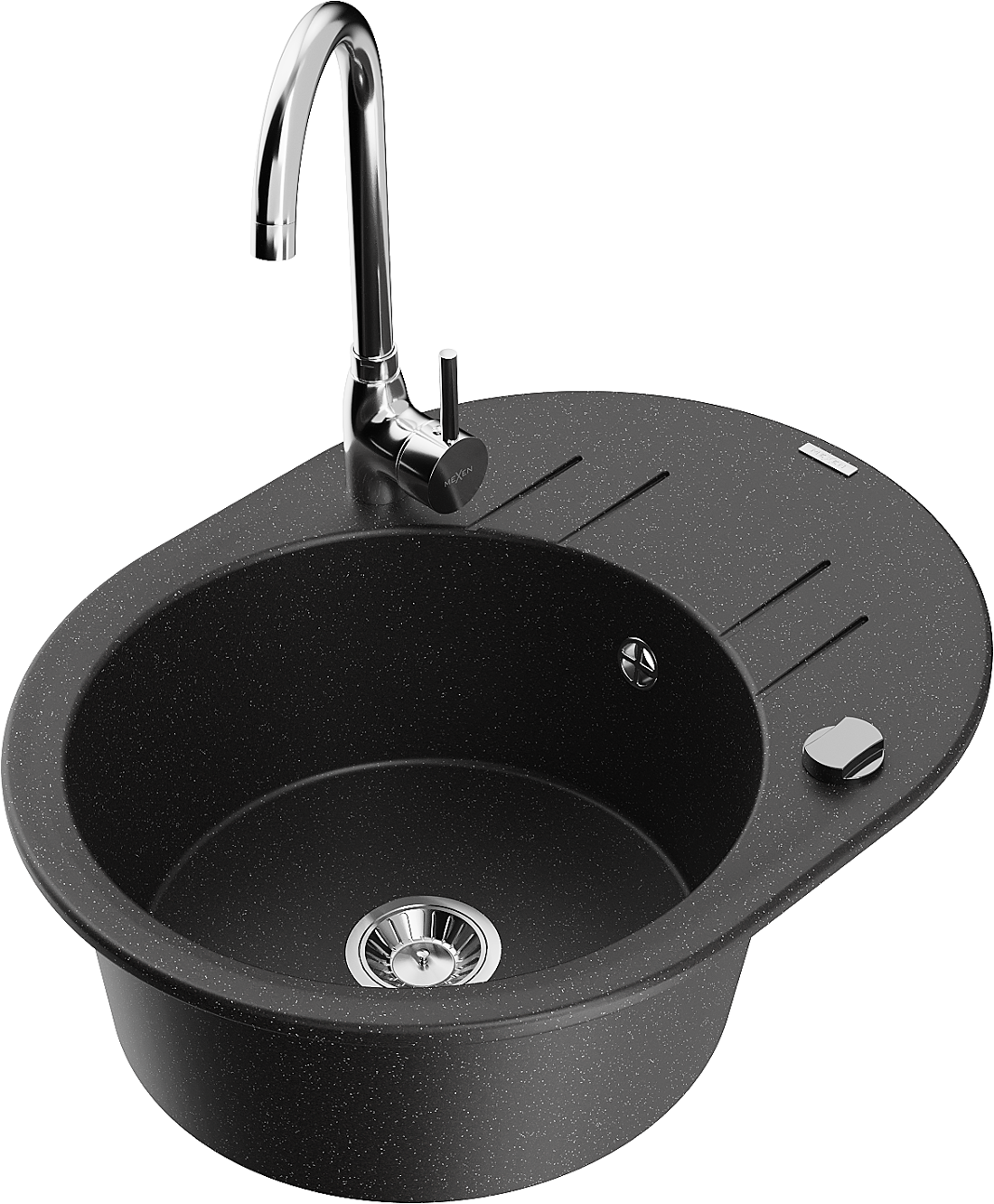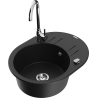 Mexen Kevin évier en granit à 1 bac avec égouttoir et robinet de cuisine Telma, noir/métallisé argent - 6517-73-670200-00