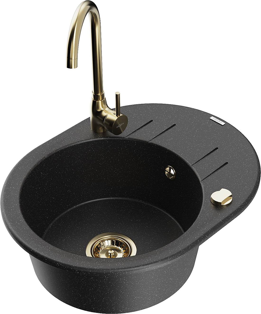 Mexen Kevin évier en granit à 1 bac avec égouttoir et robinet de cuisine Telma, noir/argent métallisé - 6517-73-670200-50