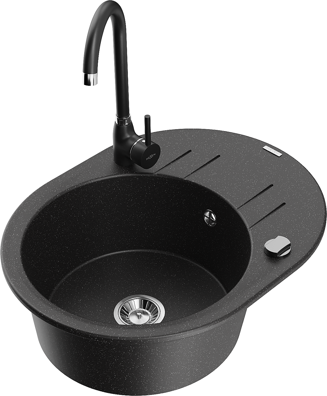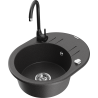 Mexen Kevin évier en granit 1 bac avec égouttoir et robinet de cuisine Telma, noir/métallisé argent - 6517-73-670200-70