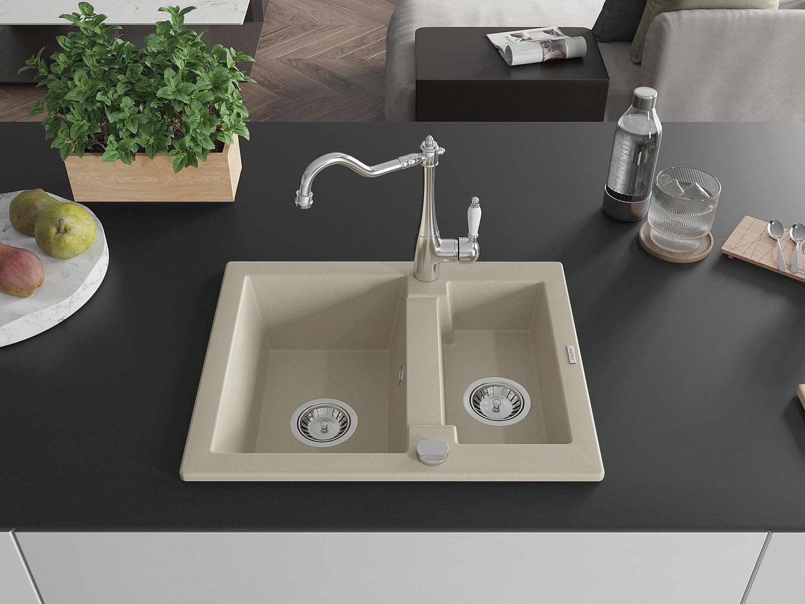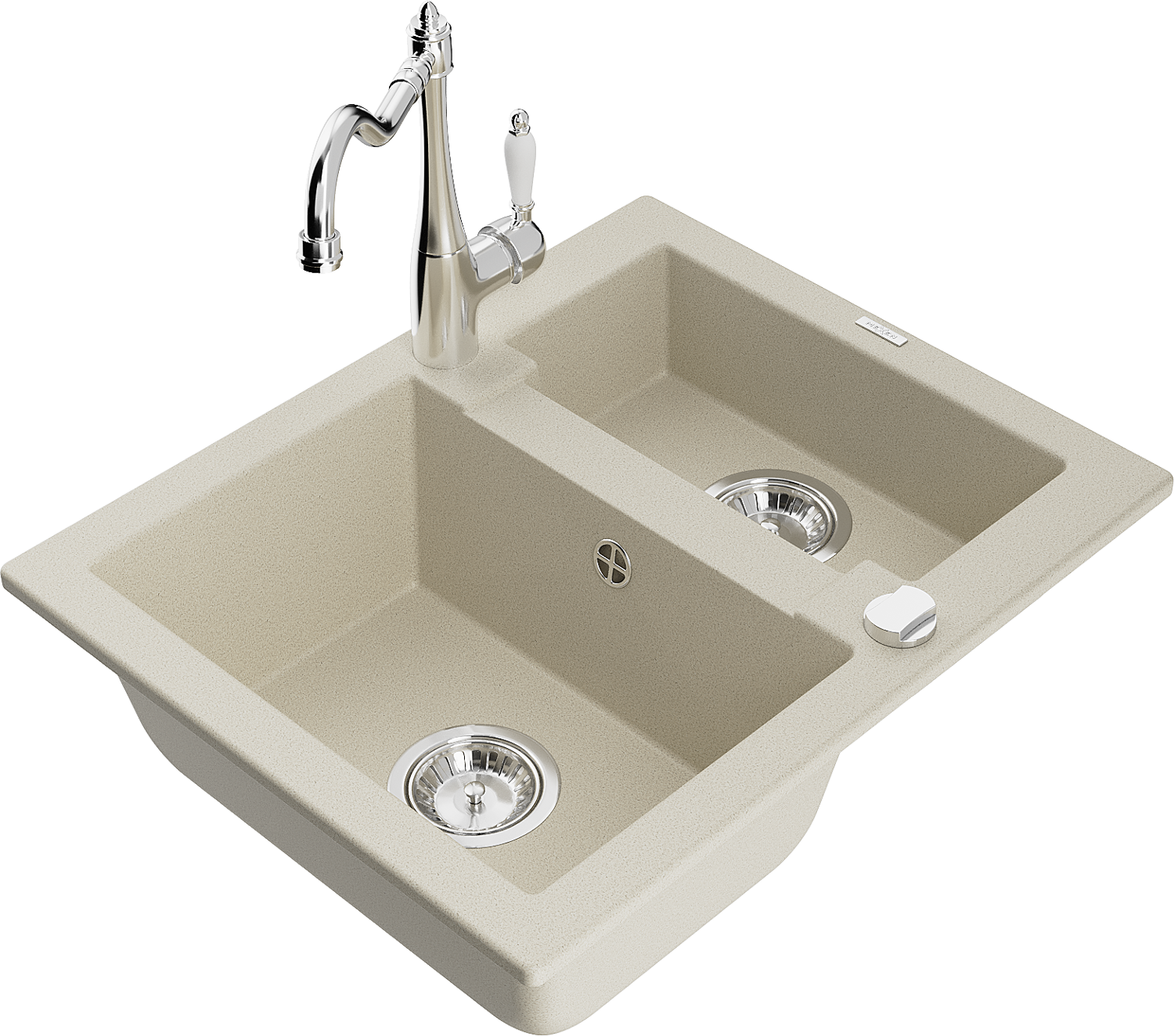 Mexen Carlos évier en granit 1,5 bac avec mitigeur de cuisine Carla, beige - 6518-69-670700-00