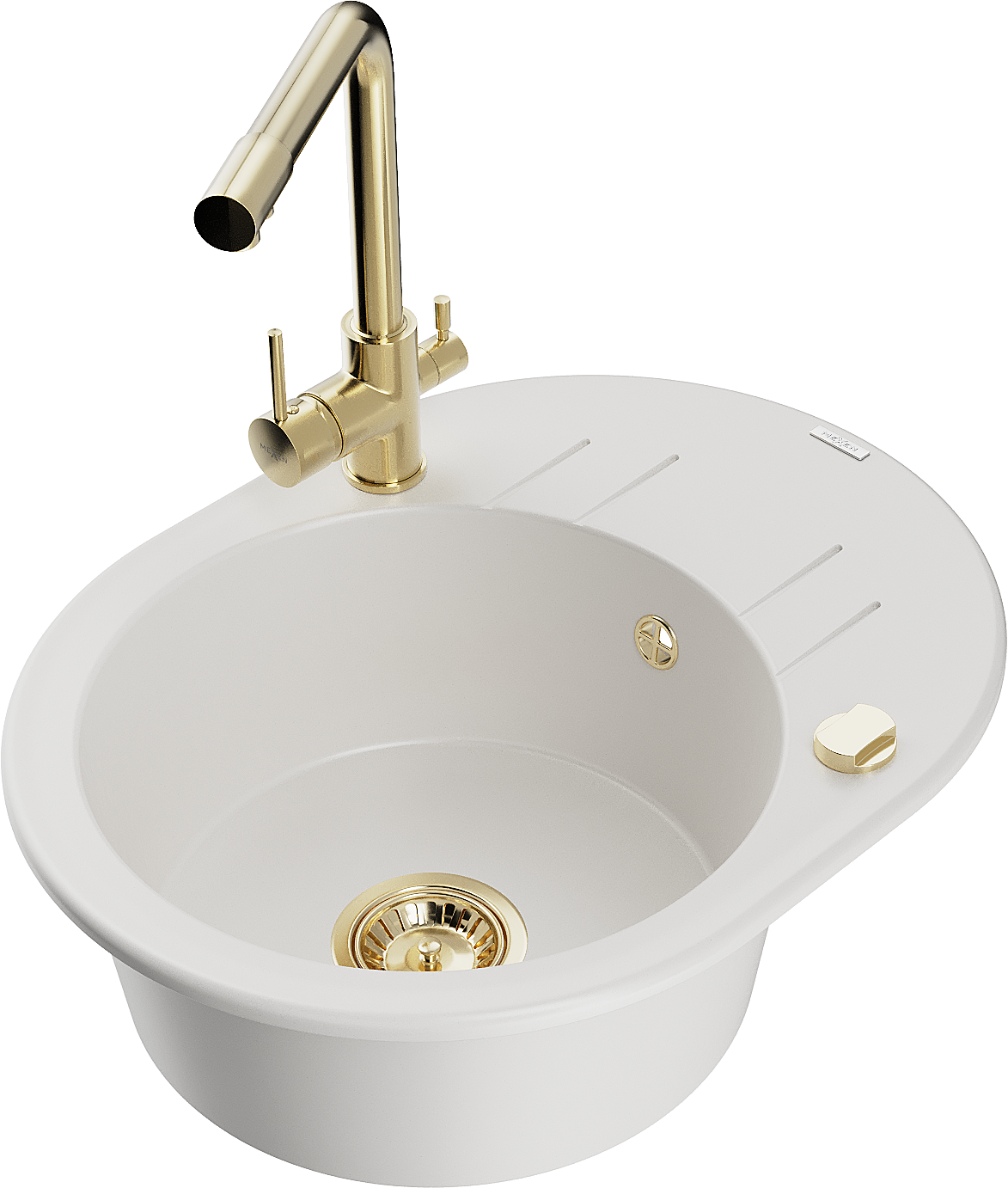 Mexen Kevin évier en granit à 1 bac avec égouttoir et robinet de cuisine Duero, blanc - 6517-20-671600-50