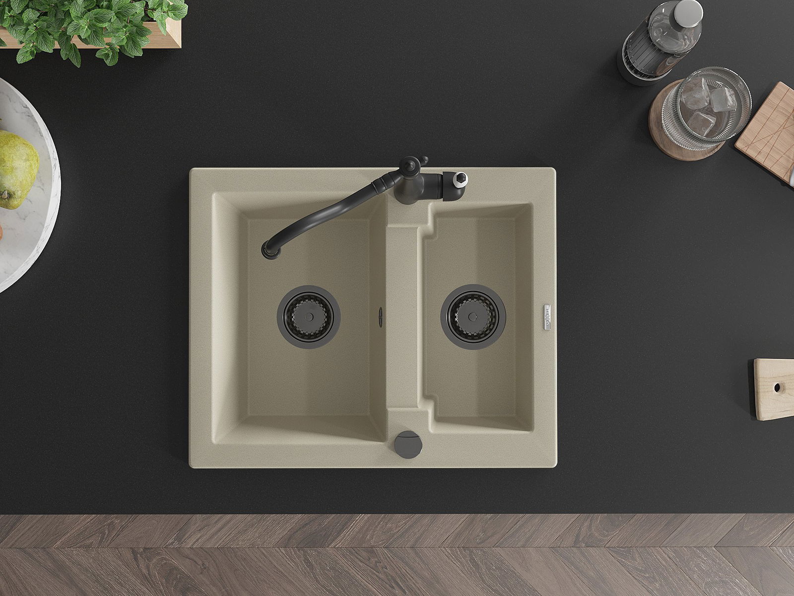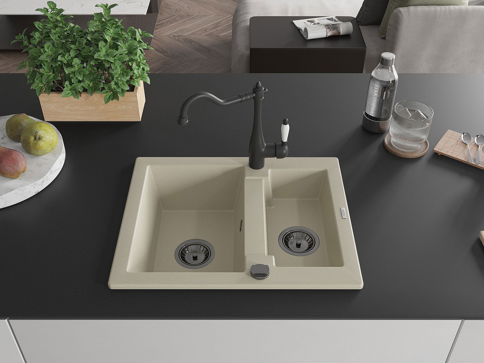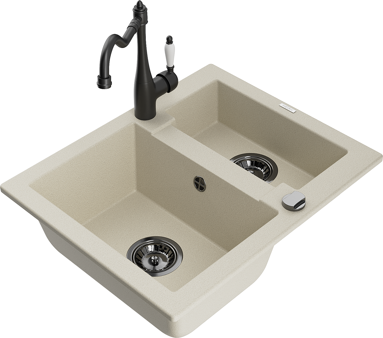 Mexen Carlos évier en granit 1,5 bac avec robinet de cuisine Carla, beige - 6518-69-670700-70