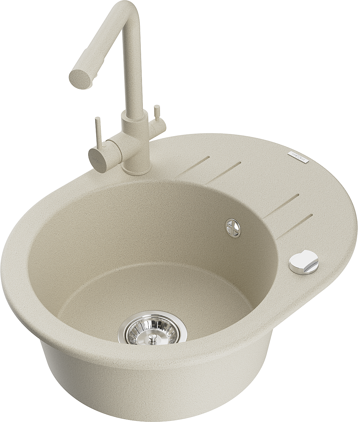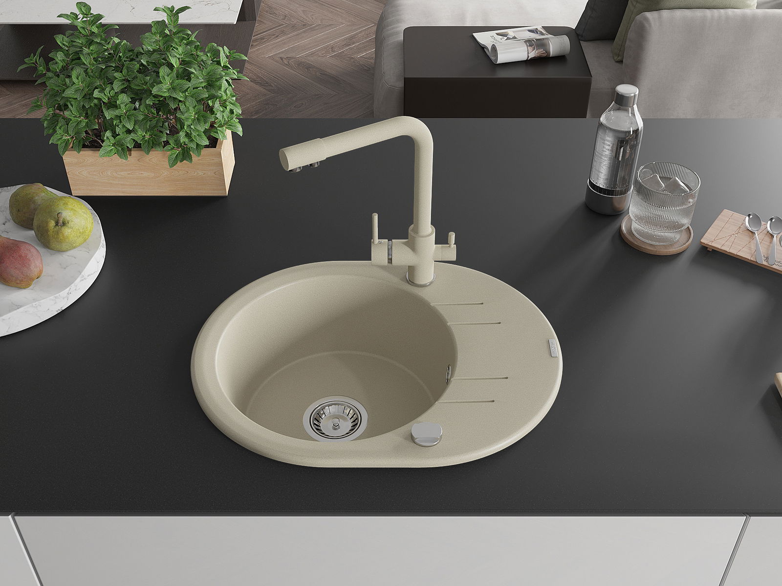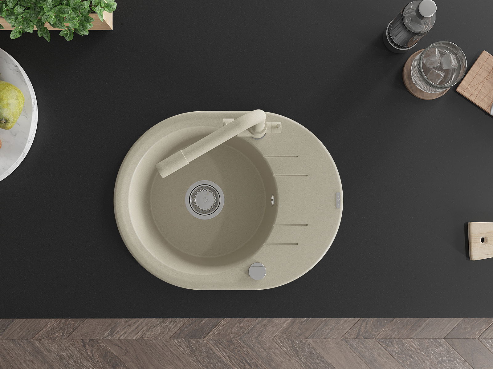 Mexen Kevin évier en granit à 1 bac avec égouttoir et robinet de cuisine Duero, beige - 6517-69-671600-69
