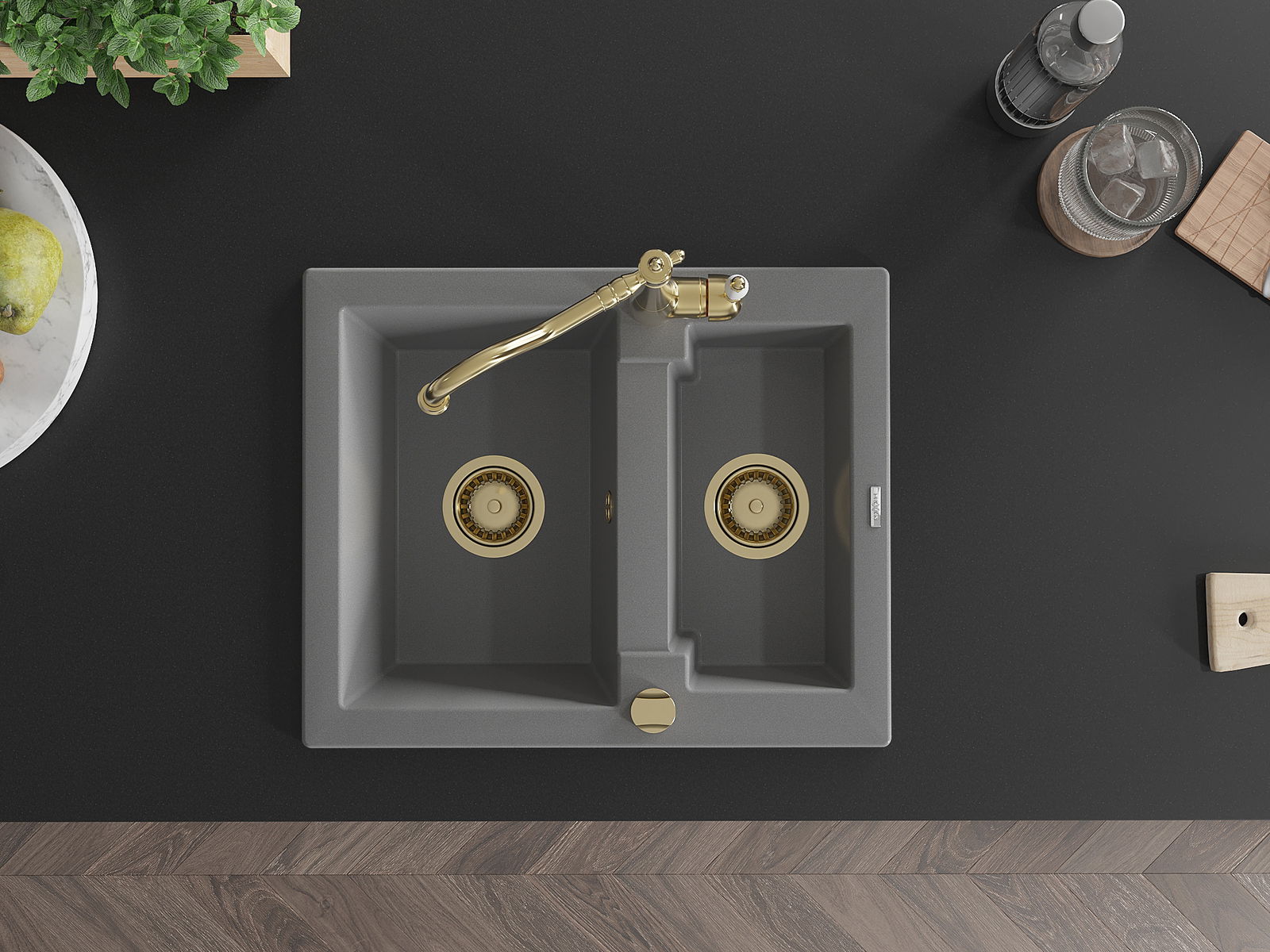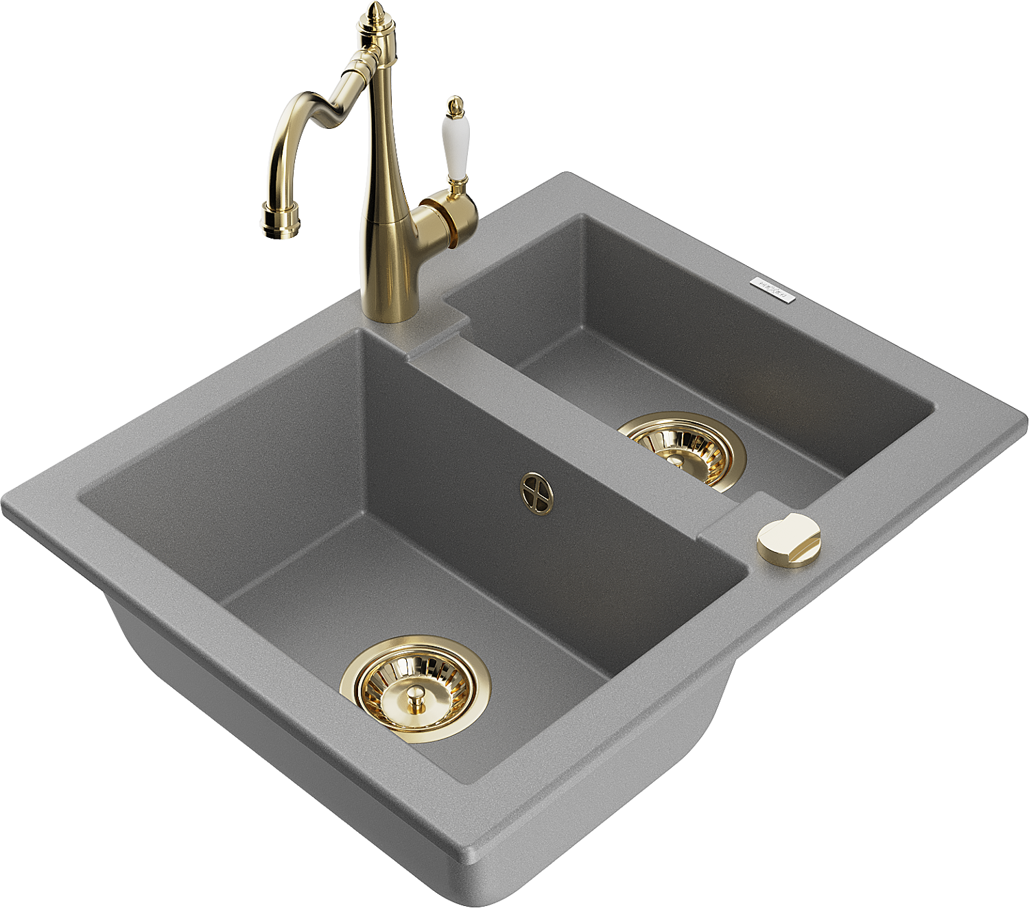 Mexen Carlos évier en granit 1,5 bac avec robinet de cuisine Carla, gris - 6518-71-670700-50