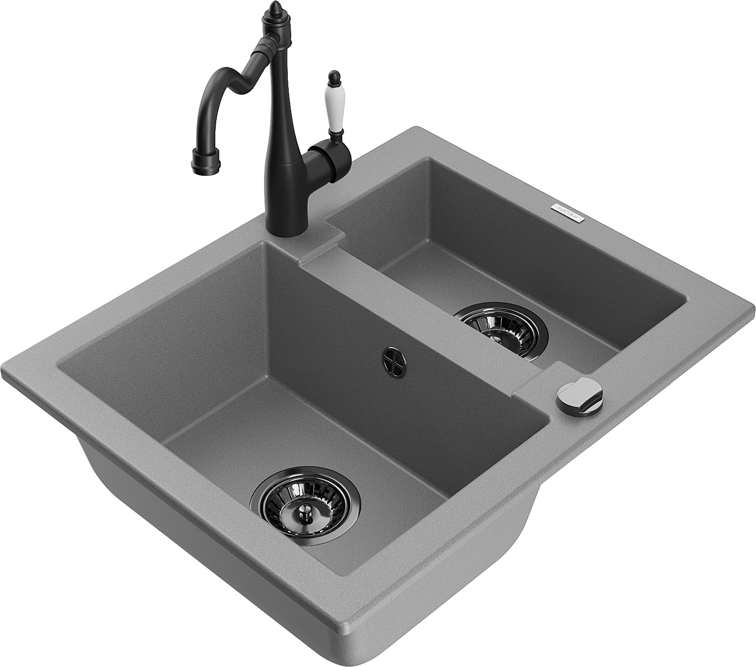 Mexen Carlos évier en granit 1,5-bac avec robinet de cuisine Carla, gris - 6518-71-670700-70-B
