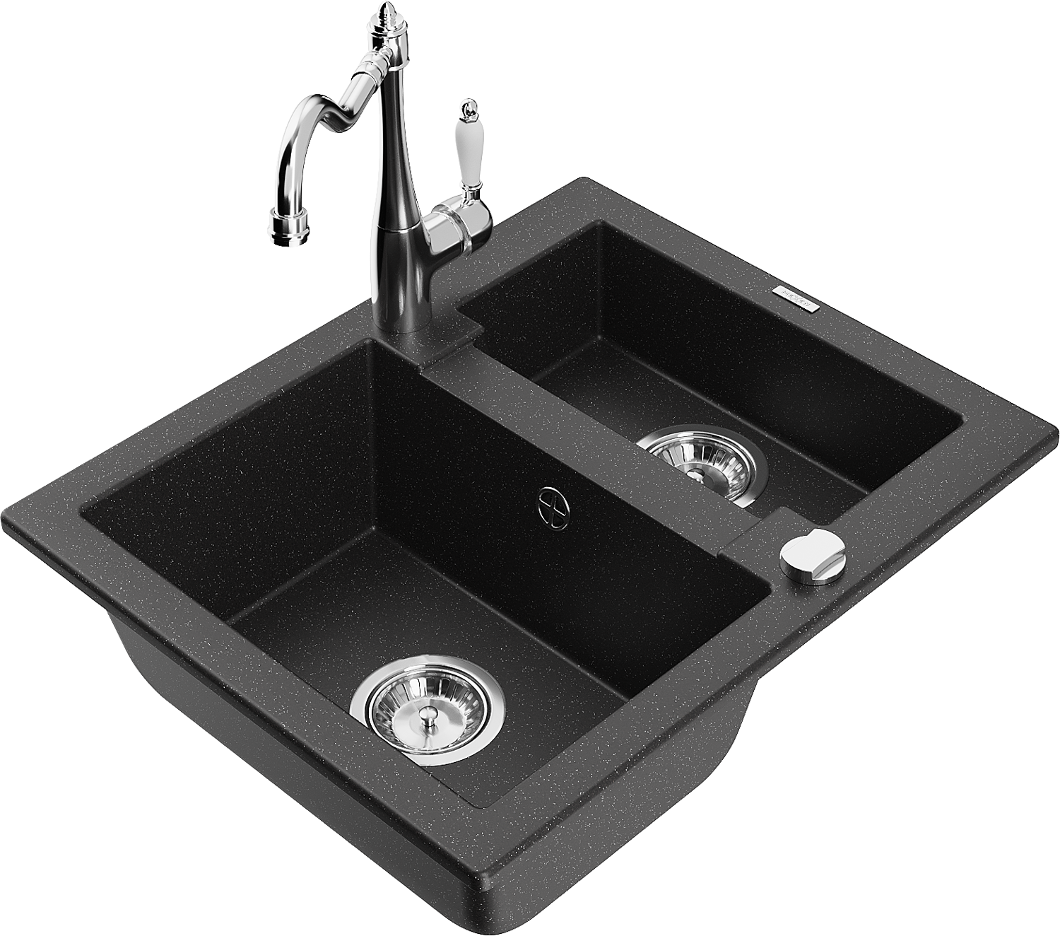 Mexen Carlos évier de cuisine en granit 1,5 bac avec robinet de cuisine Carla, noir/argent métallisé - 6518-73-670700-00