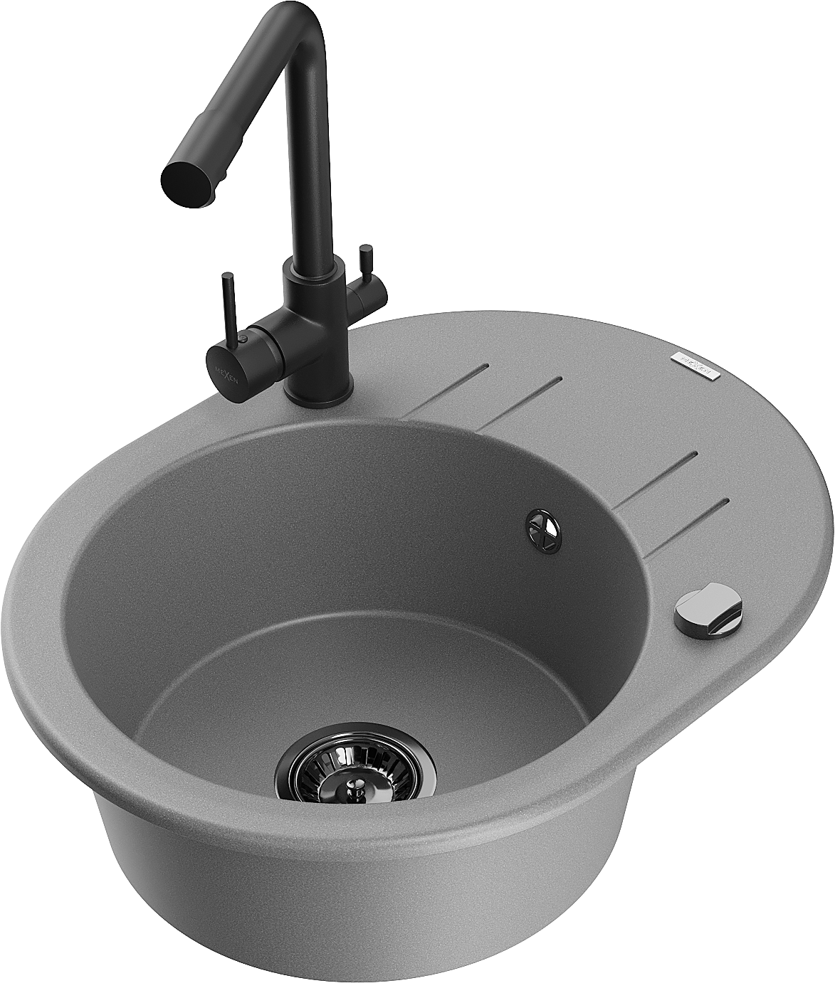 Mexen Kevin évier de cuisine en granit à 1 bac avec égouttoir et robinet de cuisine Duero, gris - 6517-71-671600-70-B