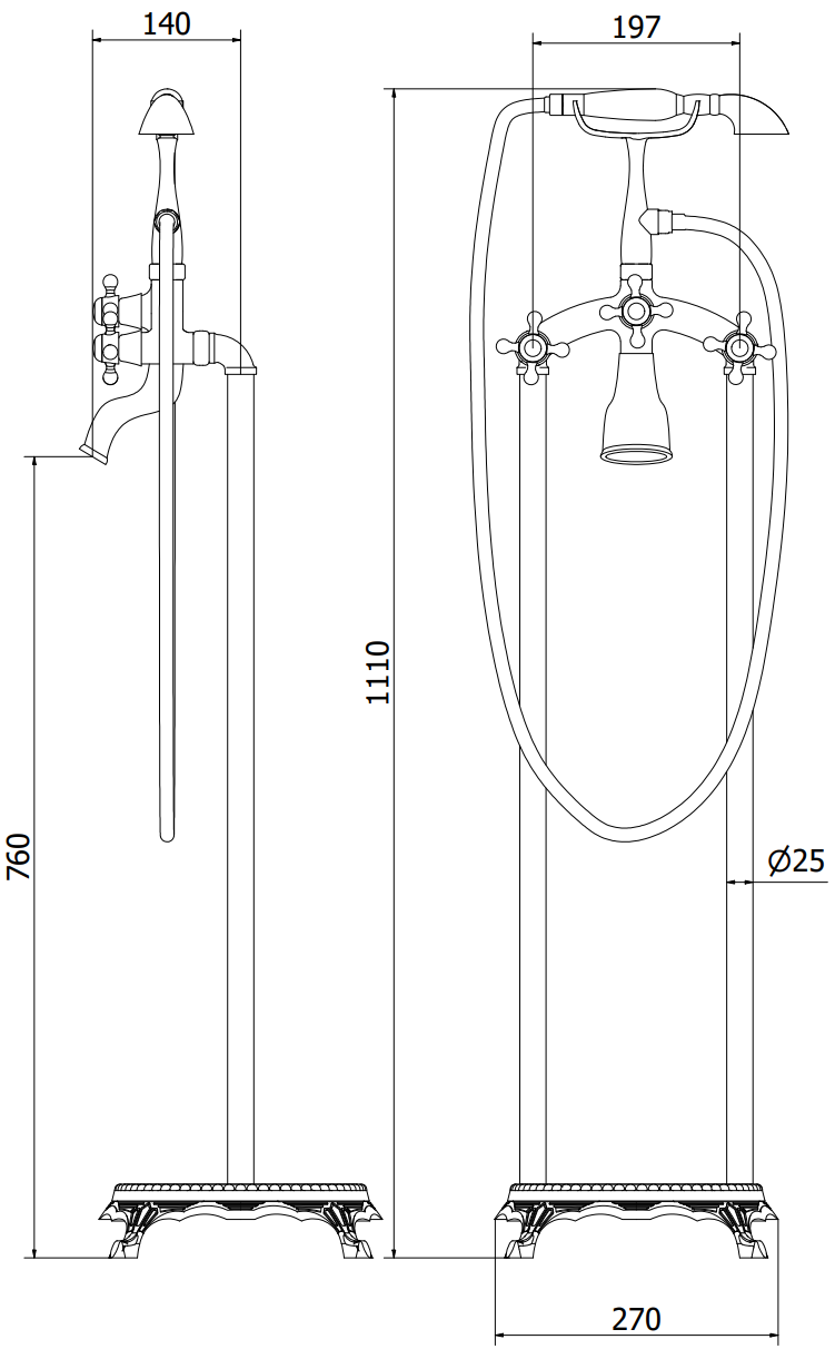 Mexen Retro robinet de baignoire autoportant, chrome - 75933-00