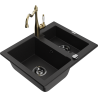 Mexen Carlos évier en granit 1,5 bac avec robinet de cuisine Carla, noir/or métallisé - 6518-75-670700-50-B