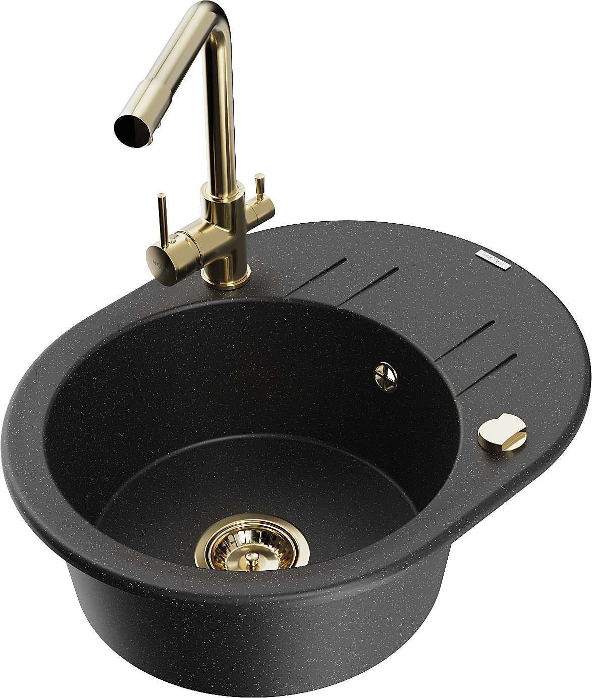 Mexen Kevin évier en granit 1 bac avec égouttoir et robinet de cuisine Duero, noir/argent métallique - 6517-73-671600-50