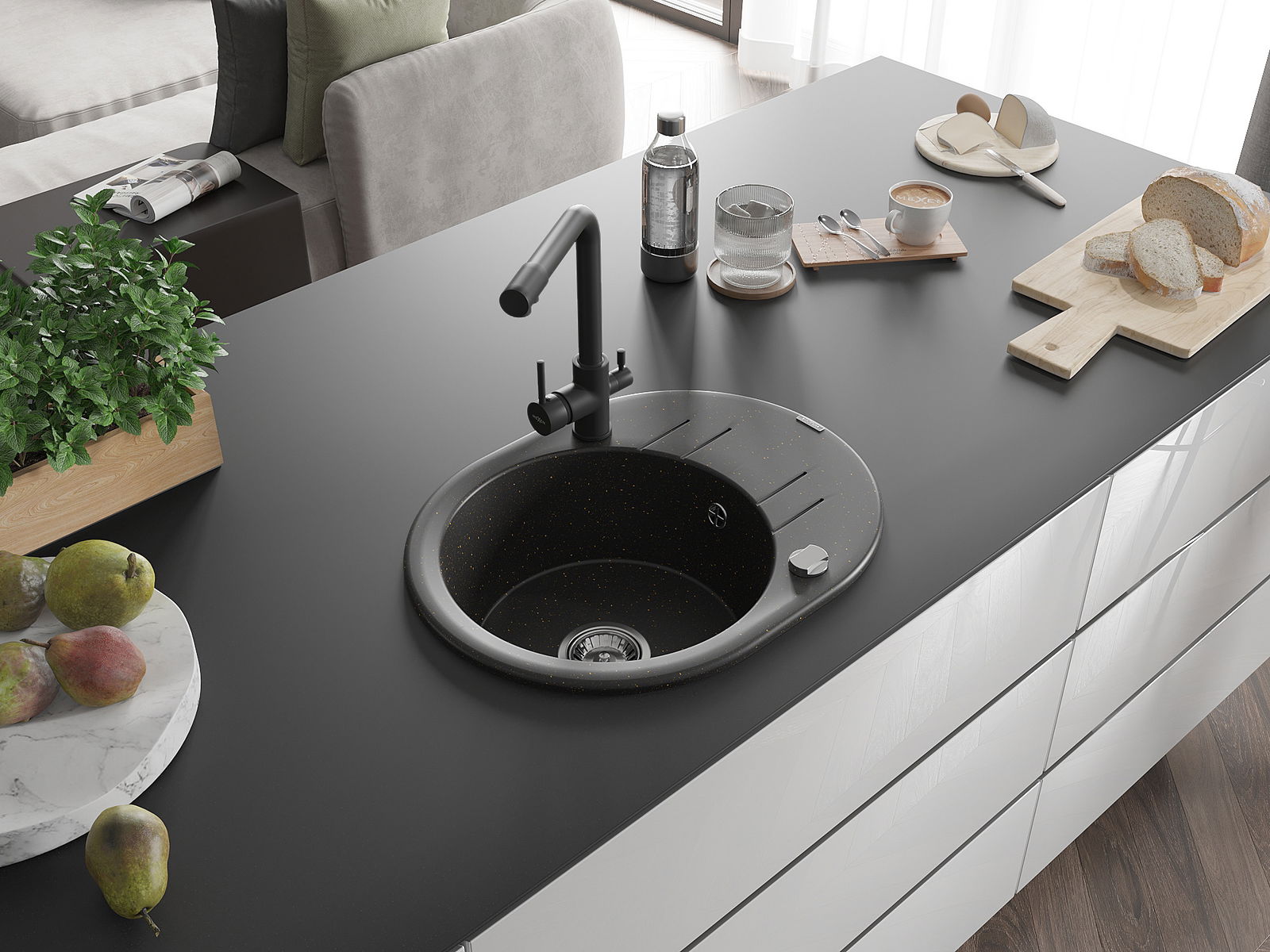 L'évier est fabriqué en granit de haute qualité. Il constitue un complément élégant et surtout pratique pour toute cuisine, quel que soit son style. La qualité et la durabilité du granit garantissent de nombreuses années d'utilisation.