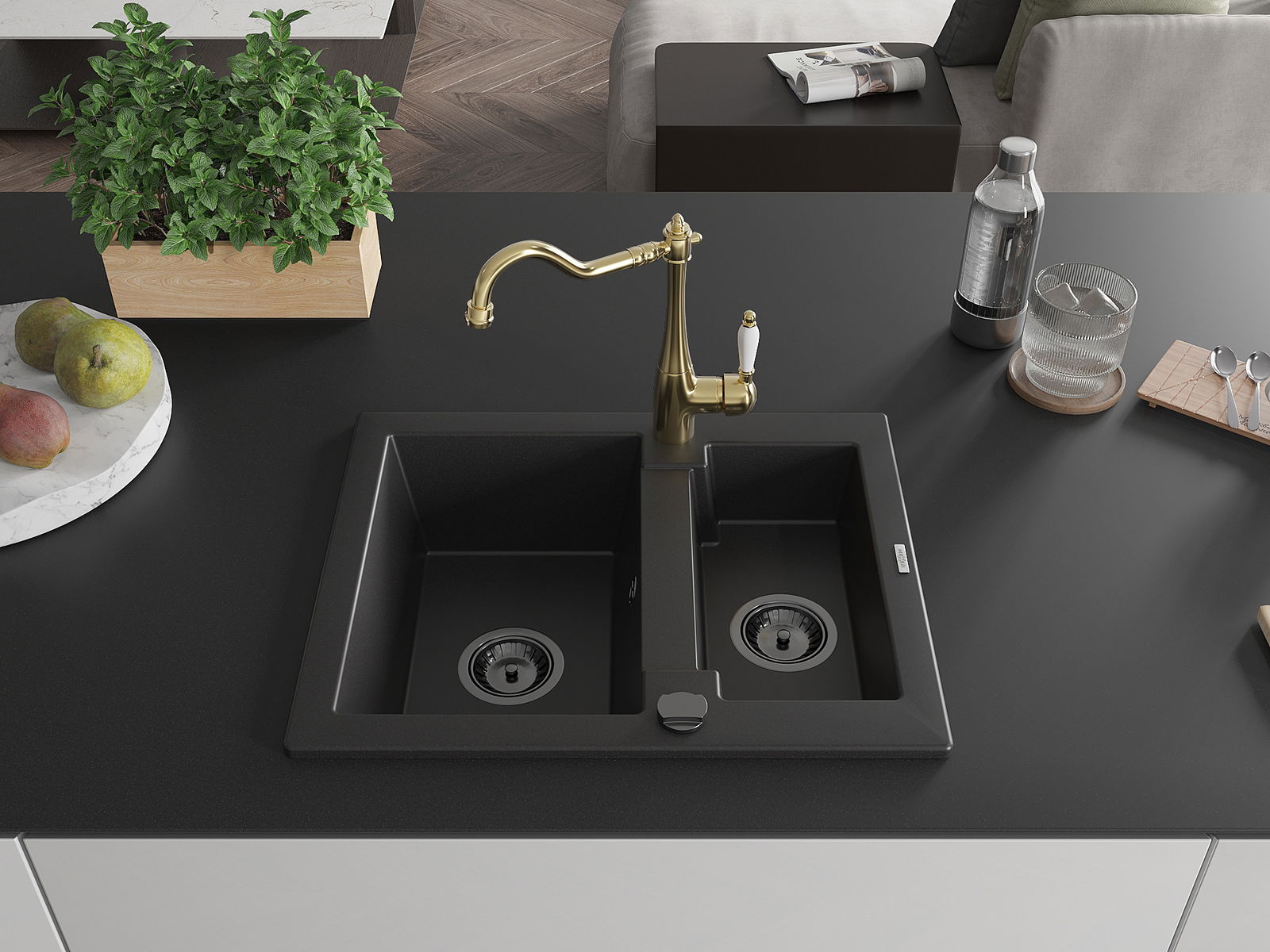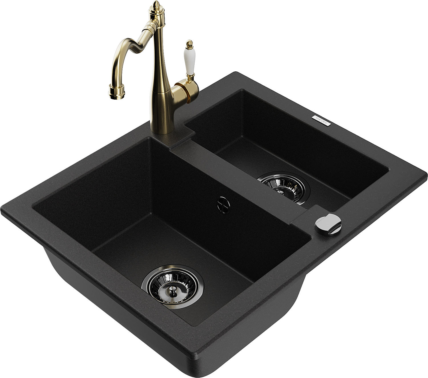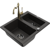 Mexen Carlos évier en granit à 1,5 bac avec robinet de cuisine Carla, noir - 6518-77-670700-50-B
