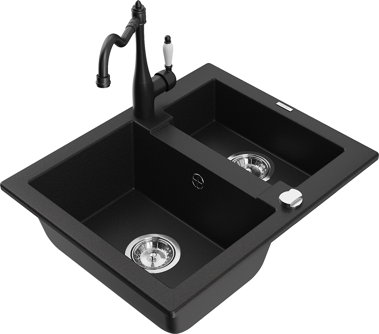 Mexen Carlos évier en granit 1,5 bac avec robinet de cuisine Carla, noir - 6518-77-670700-70