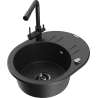 Mexen Kevin évier de cuisine en granit 1 bac avec égouttoir et mitigeur Duero, noir moucheté - 6517-76-671600-70-B