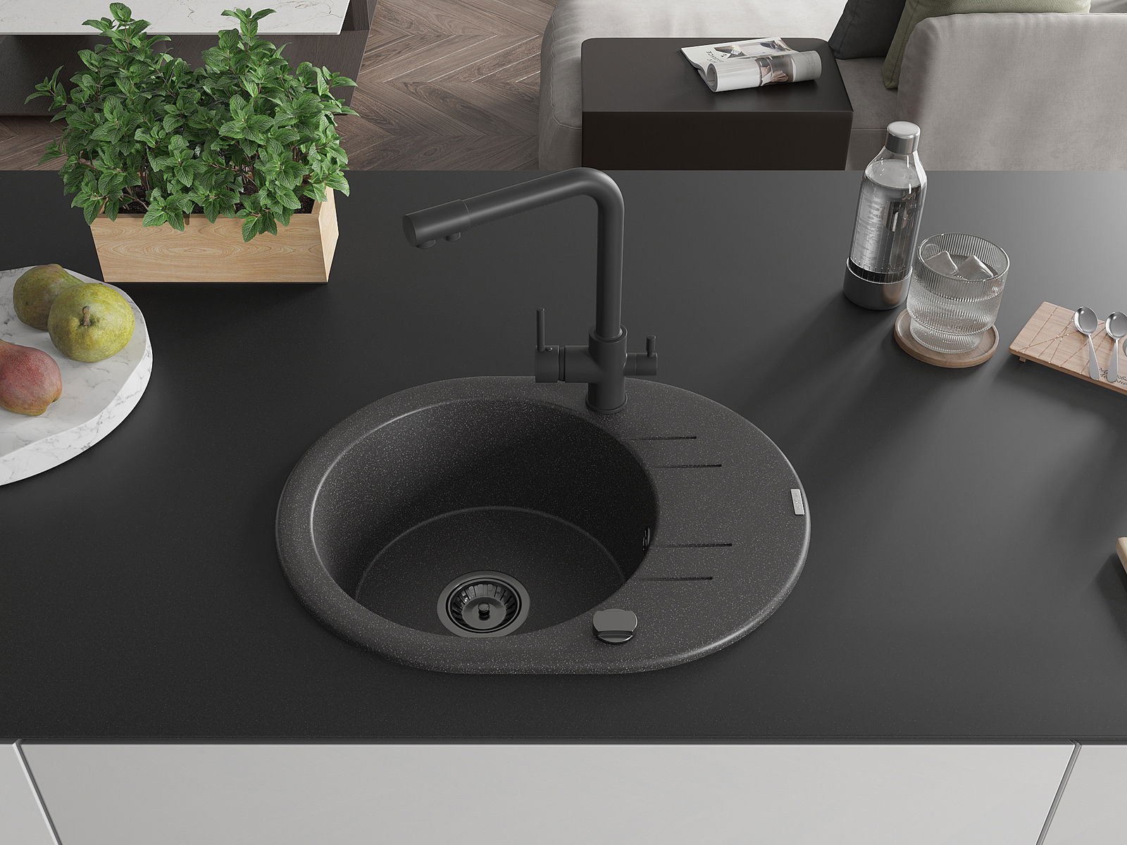 L'évier est fabriqué en granit de haute qualité. Il constitue un complément élégant et surtout pratique pour toute cuisine, quel que soit son style. La qualité et la durabilité du granit garantissent de nombreuses années d'utilisation.