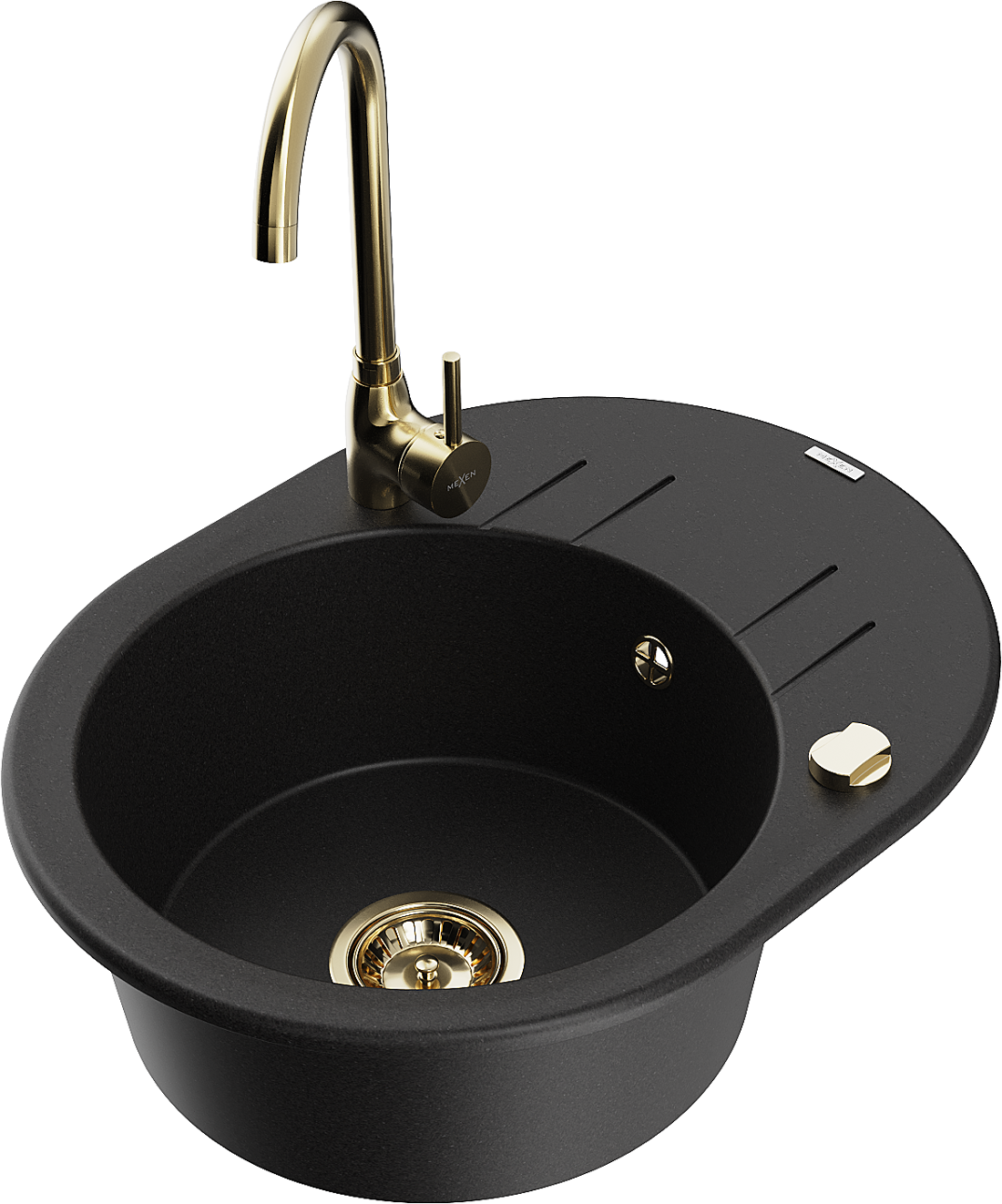 Mexen Kevin évier en granit à 1 bac avec égouttoir et robinet de cuisine Telma, noir - 6517-77-670200-50