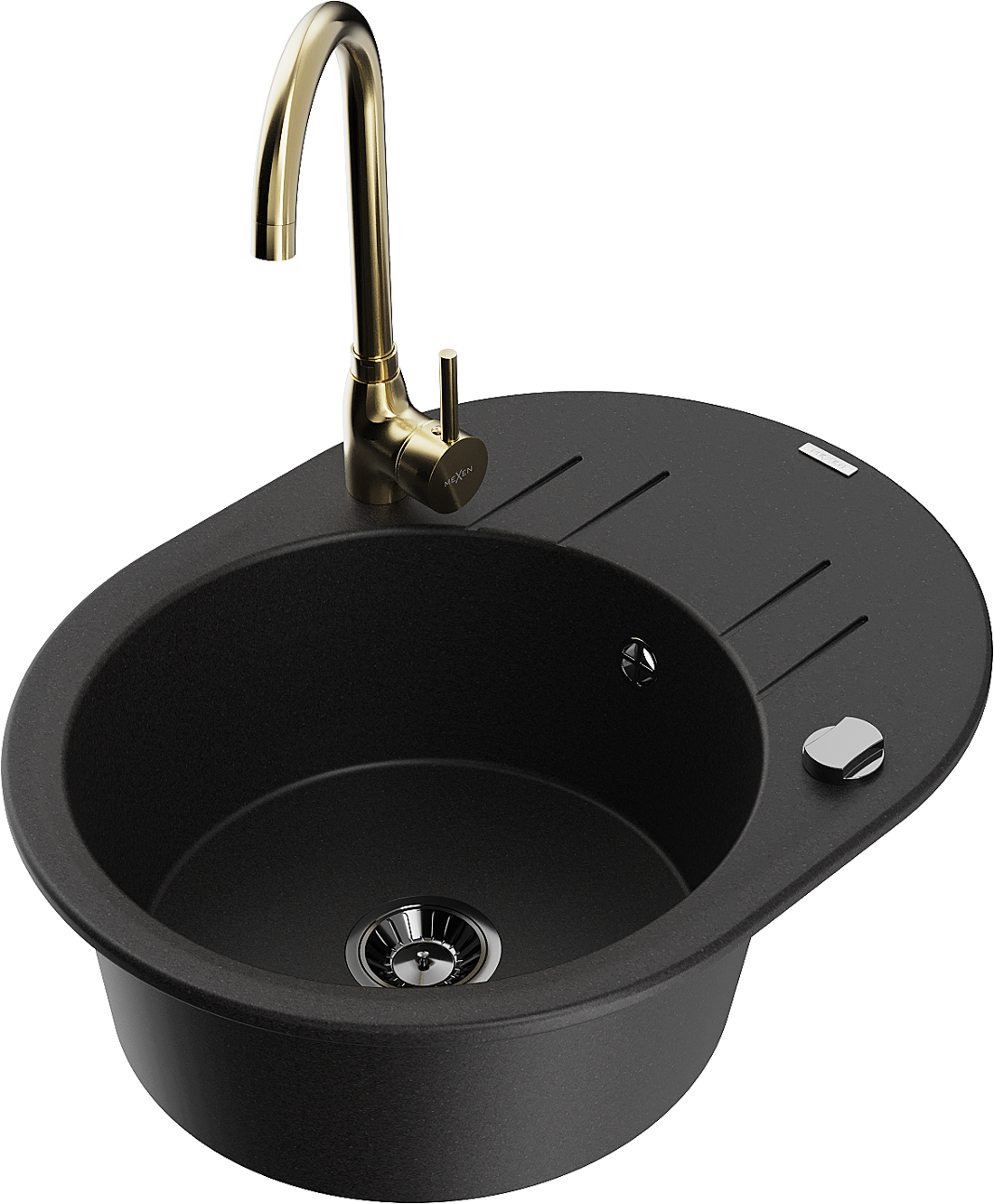 Mexen Kevin évier en granit 1 bac avec égouttoir et robinet de cuisine Telma, noir - 6517-77-670200-50-B