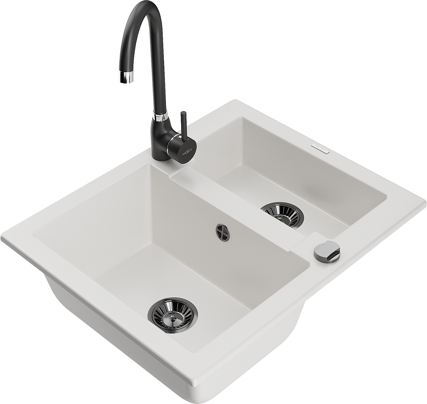 Mexen Carlos évier en granit 1,5 bac avec robinet de cuisine Telma, blanc - 6518-20-670200-70
