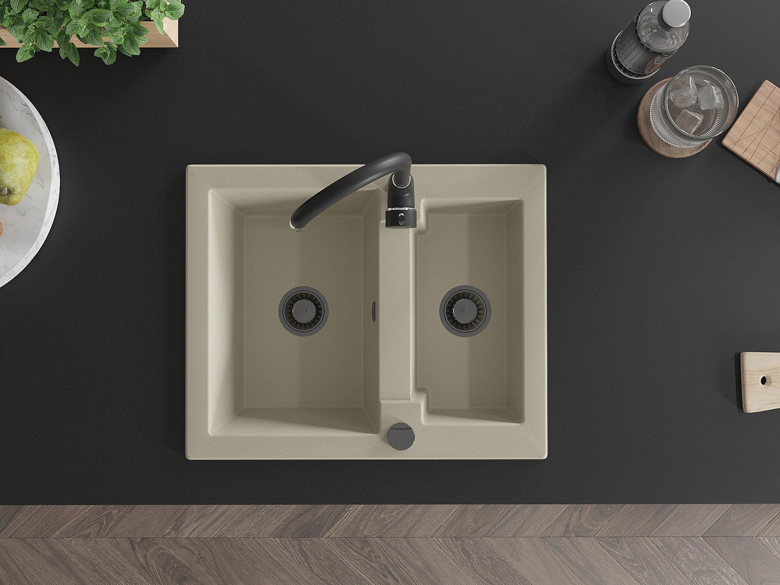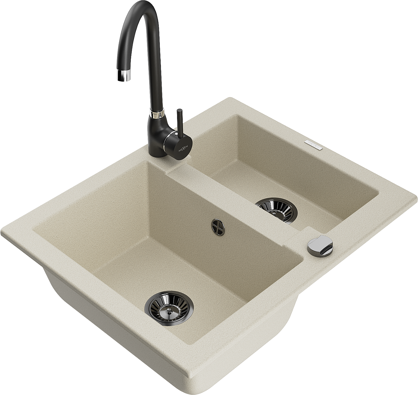 Mexen Carlos évier en granit 1,5 bac avec robinet de cuisine Telma, beige - 6518-69-670200-70