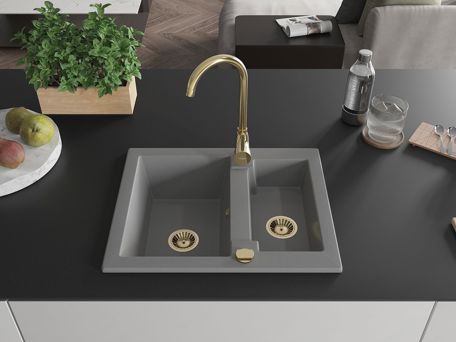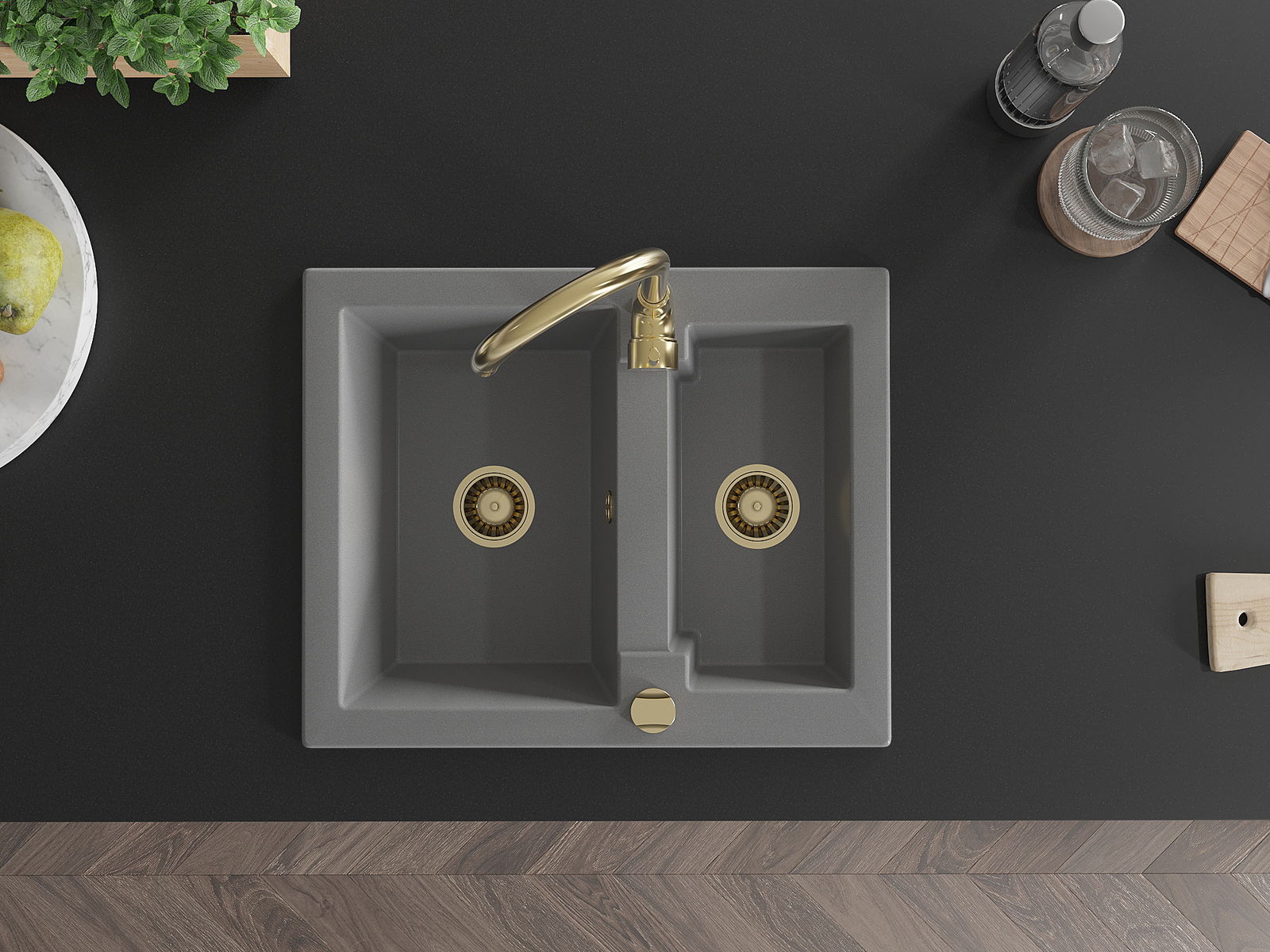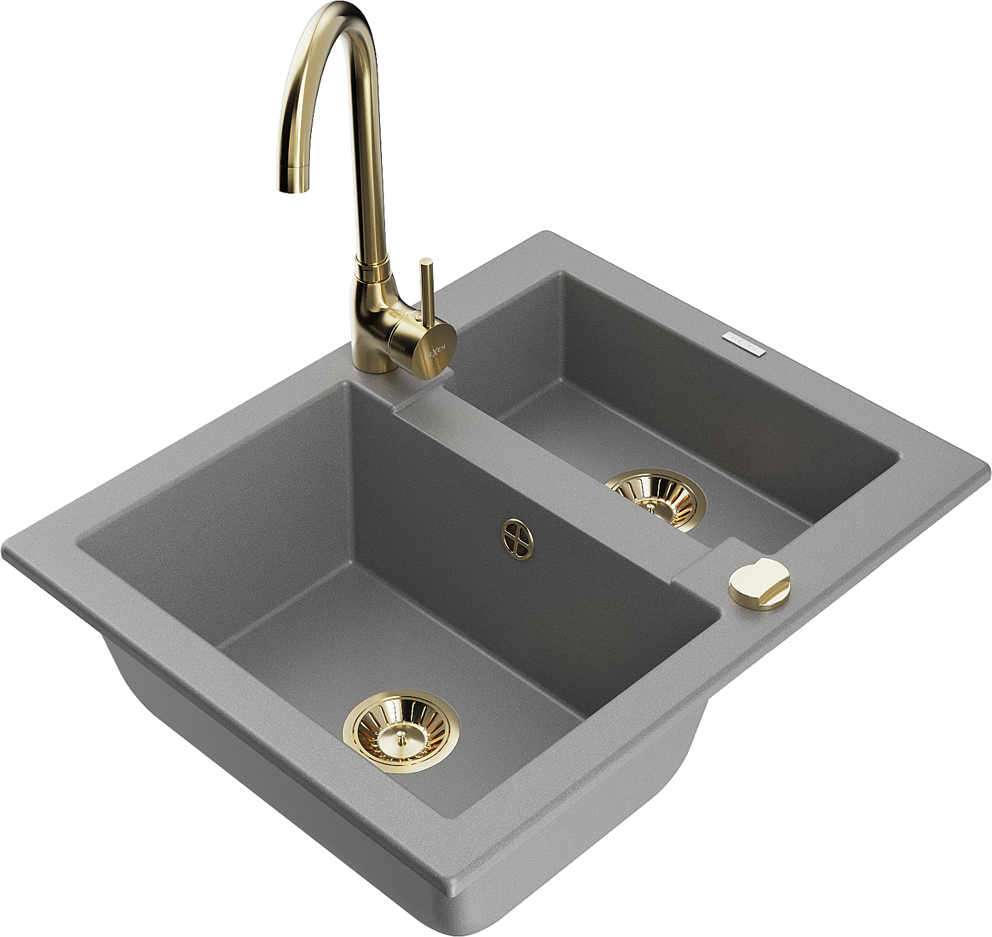 Mexen Carlos évier en granit 1,5 bac avec robinet de cuisine Telma, gris - 6518-71-670200-50
