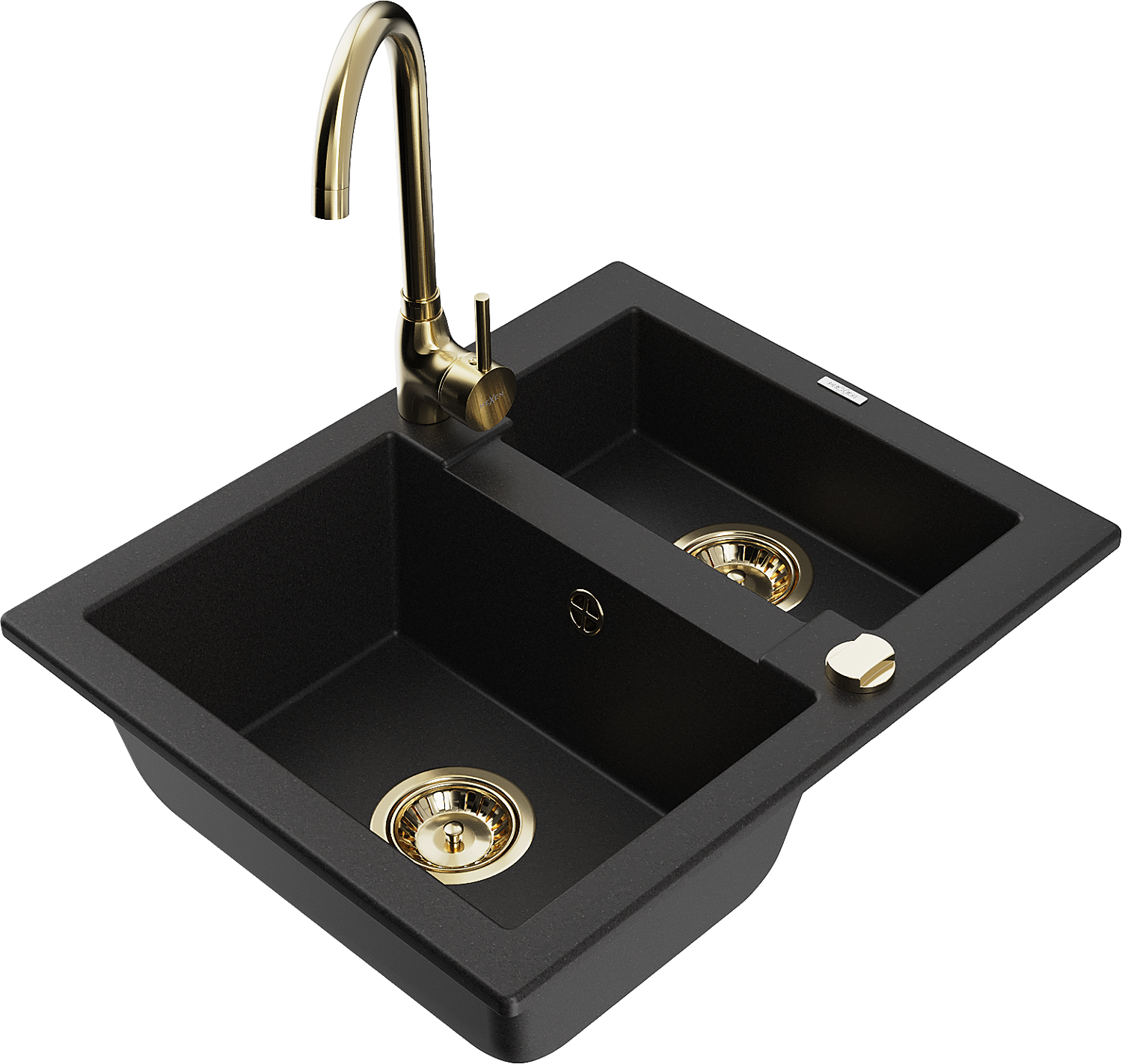 Mexen Carlos évier en granit 1,5 bac avec mitigeur de cuisine Telma, noir - 6518-77-670200-50