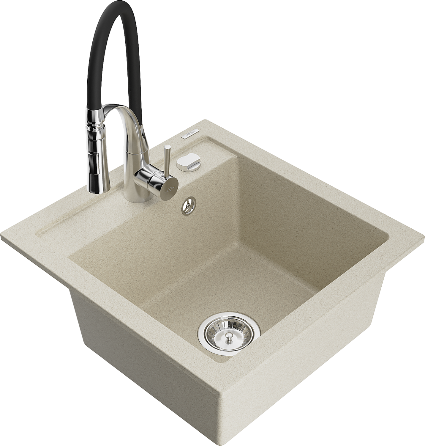 Mexen Vito évier en granit 1 bac avec robinet de cuisine Aster, beige - 6503-69-73450-07