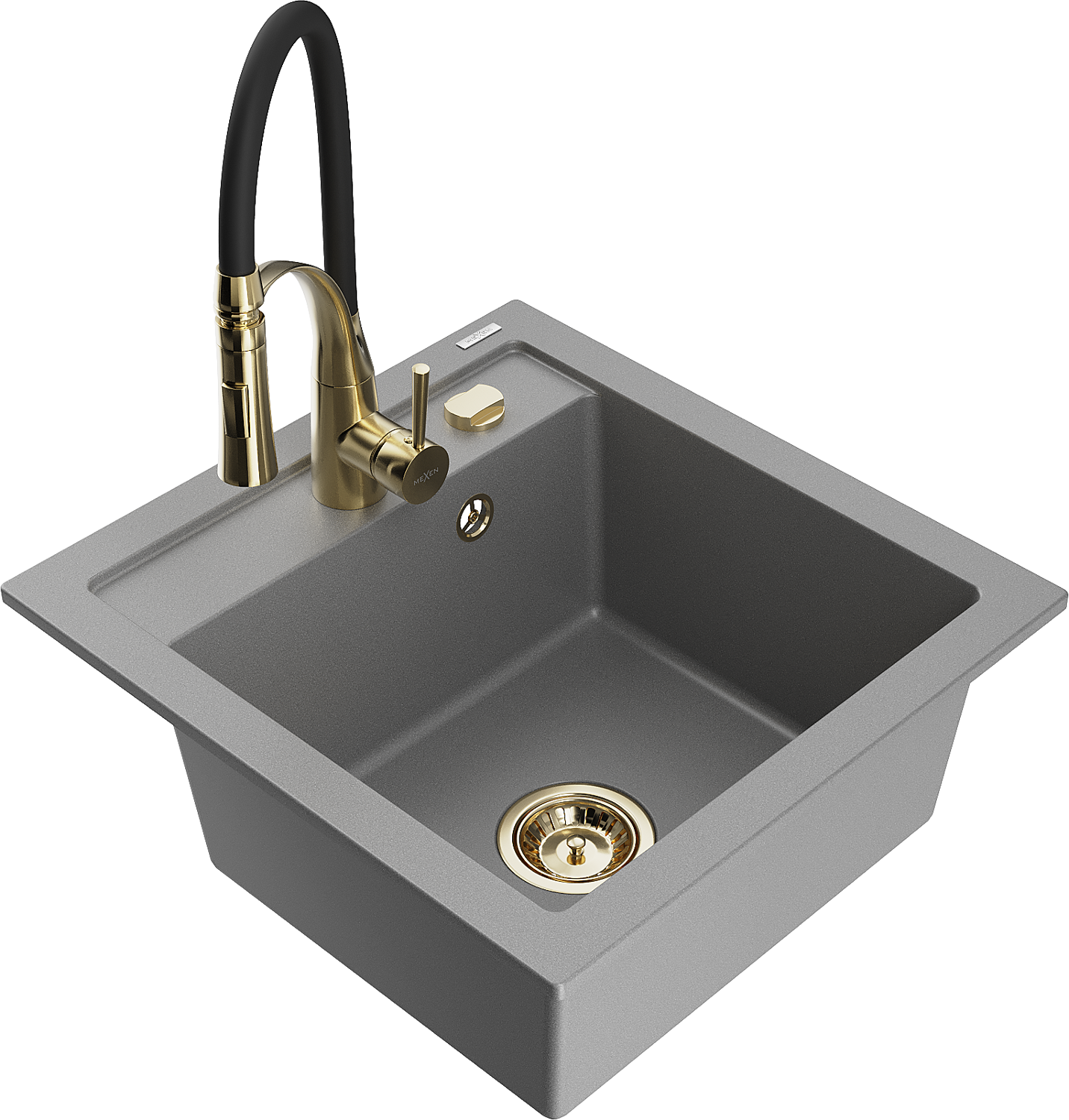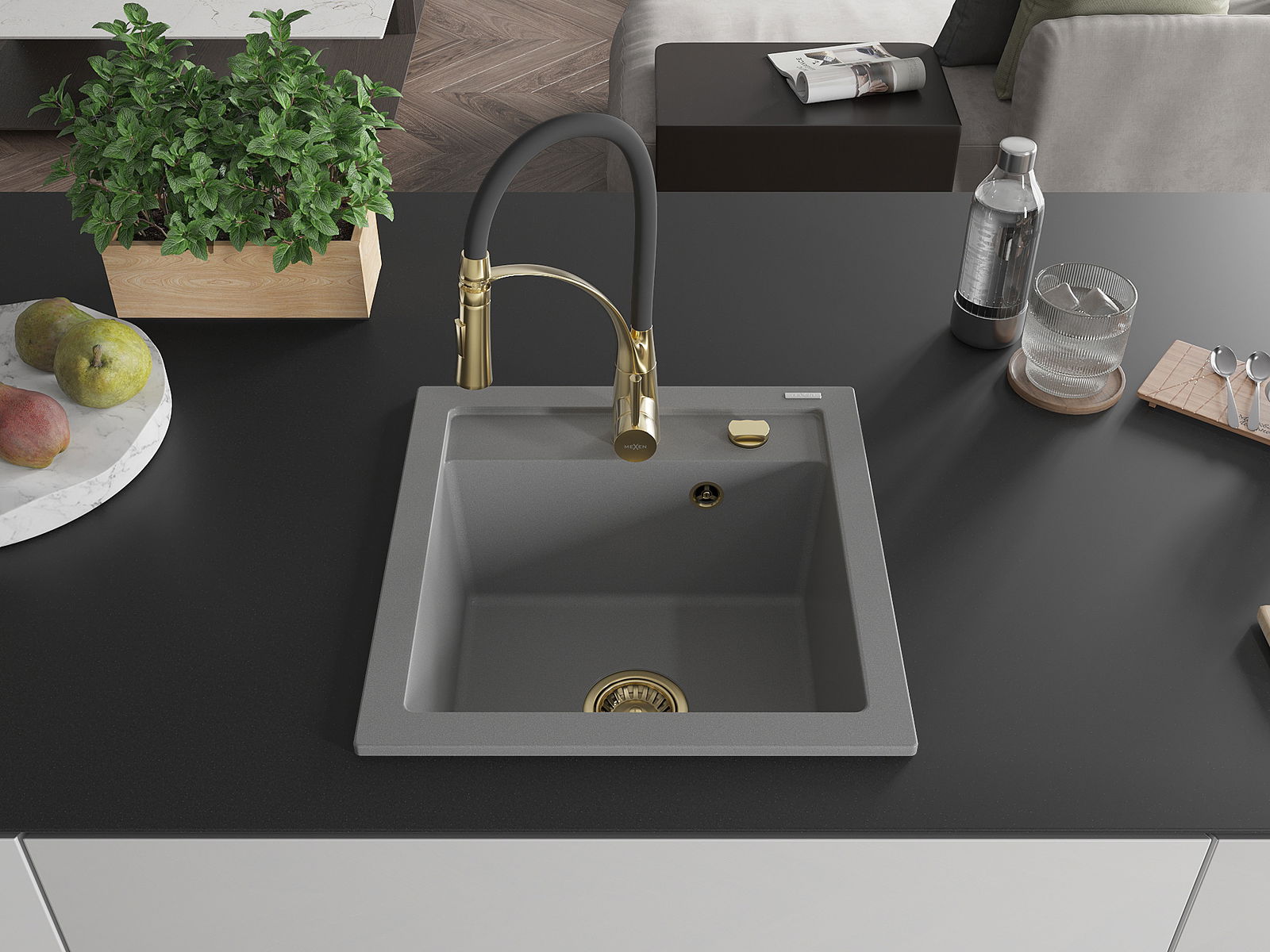 Mexen Vito évier en granit 1 bac avec mitigeur de cuisine Aster, gris - 6503-71-73450-57-G