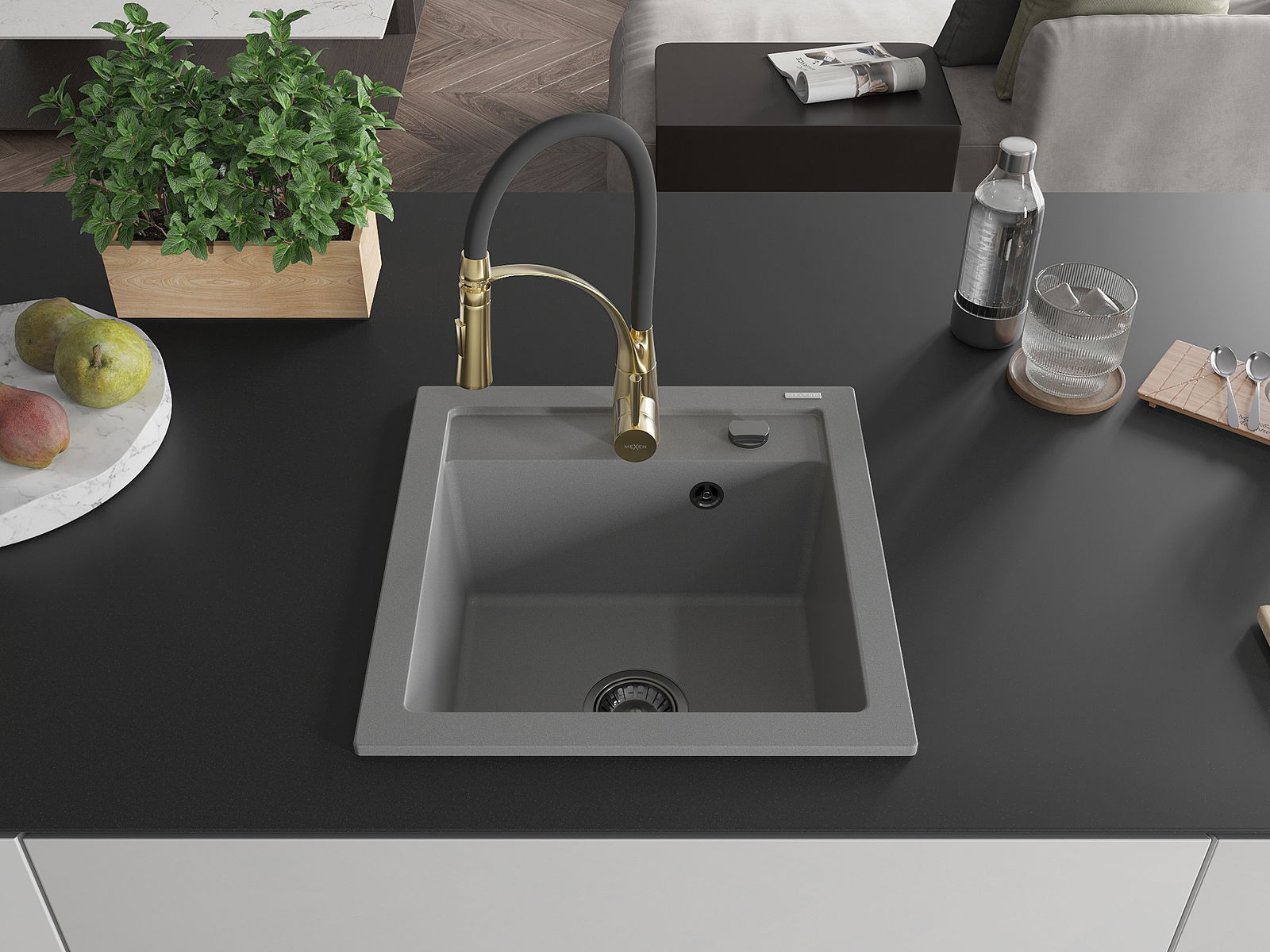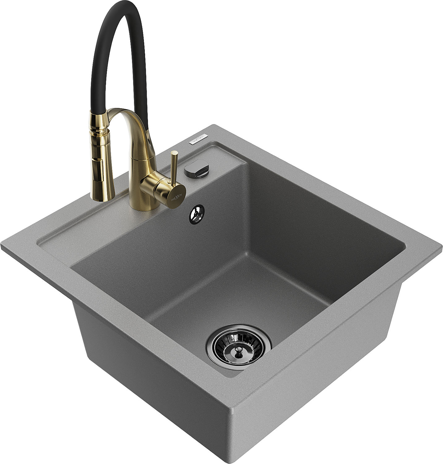 Mexen Vito évier en granit 1 bac avec mitigeur cuisine Aster, gris - 6503-71-73450-57-B